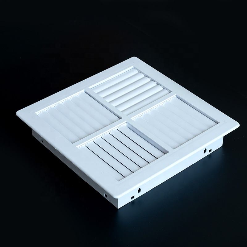 ตะแกรงกระจายลมพลาสติกสำหรับระบบปรับอากาศ HVAC แบบสี่เหลี่ยม สำหรับช่องลมกลับ ช่องลมออก ช่องระบายอากาศ 4 ทาง สำหรับเครื่องอบผ้าในห้องใต้ดิน จากผู้ผลิตโดยตรง