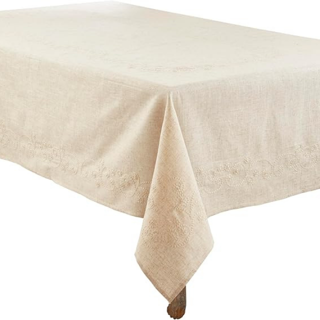 ผ้าปูโต๊ะผ้าลินินแบบสั่งทำผ้าปูโต๊ะทรงสี่เหลี่ยมผืนผ้าลายดอกไม้ผ้าปูโต๊ะปักพร้อมพู่