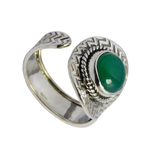 แหวนเงินสเตอร์ลิง925ทันสมัยสวยงามแหวนพลอยโอนิกซ์สีเขียวนำโชคมาผลิตโดยตรงจากผู้ผลิต