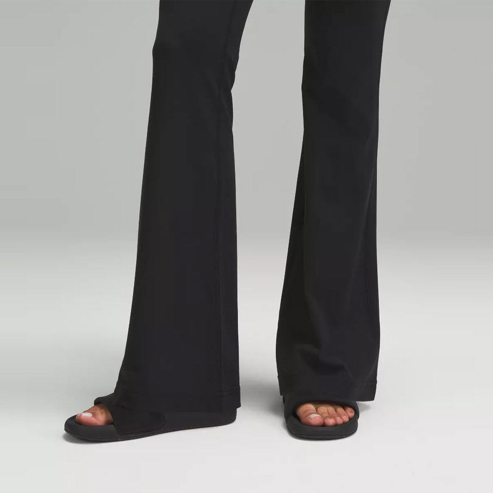 กางเกงทรงบานน้ำหนักเบาสำหรับผู้หญิงผ้าแคนวาสสียืดหยุ่นได้แบบเอวแบนด้านหน้าสำหรับฤดูหนาว