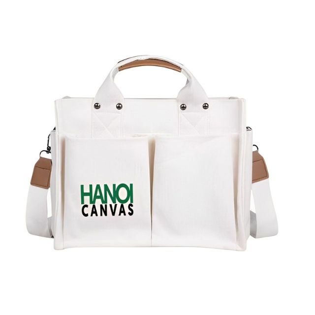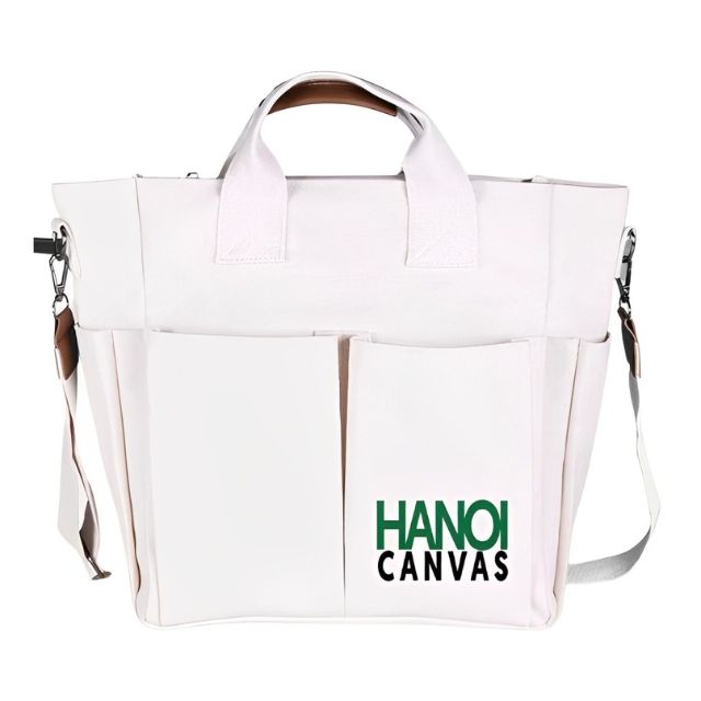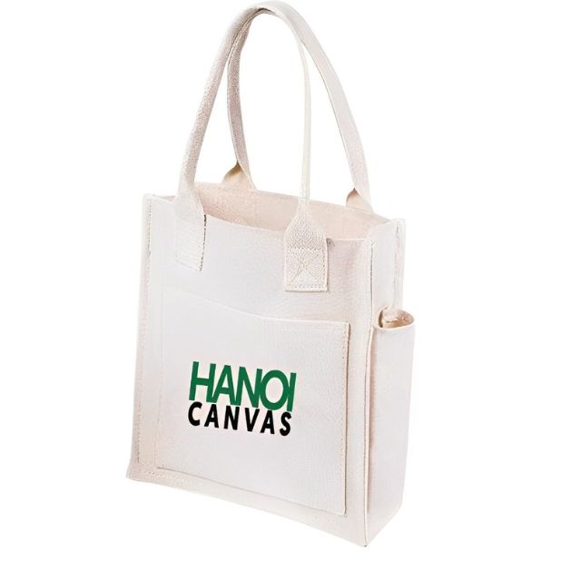 กระเป๋าผ้าแคนวาสแบบมีหูหิ้วทำจากผ้าฝ้ายเป็นมิตรกับสิ่งแวดล้อม12ออนซ์ใช้ซ้ำได้สำหรับไปโรงเรียนได้รับการรับรอง