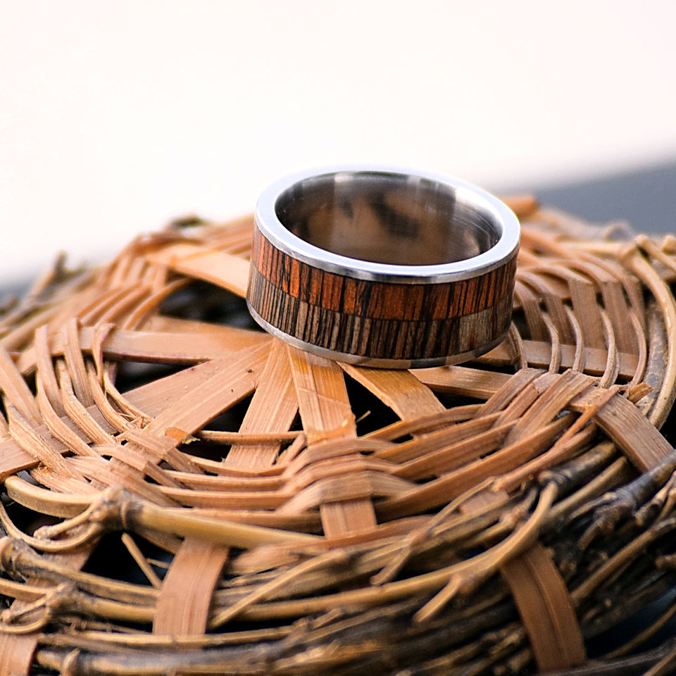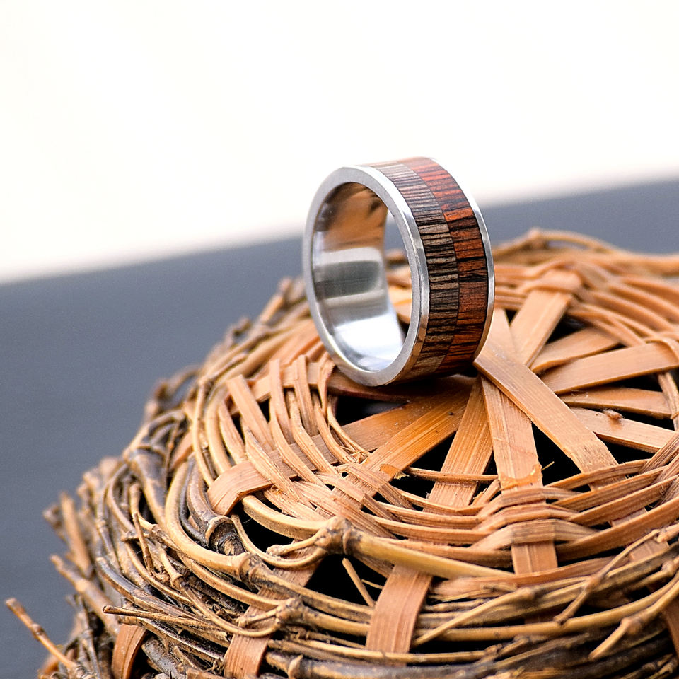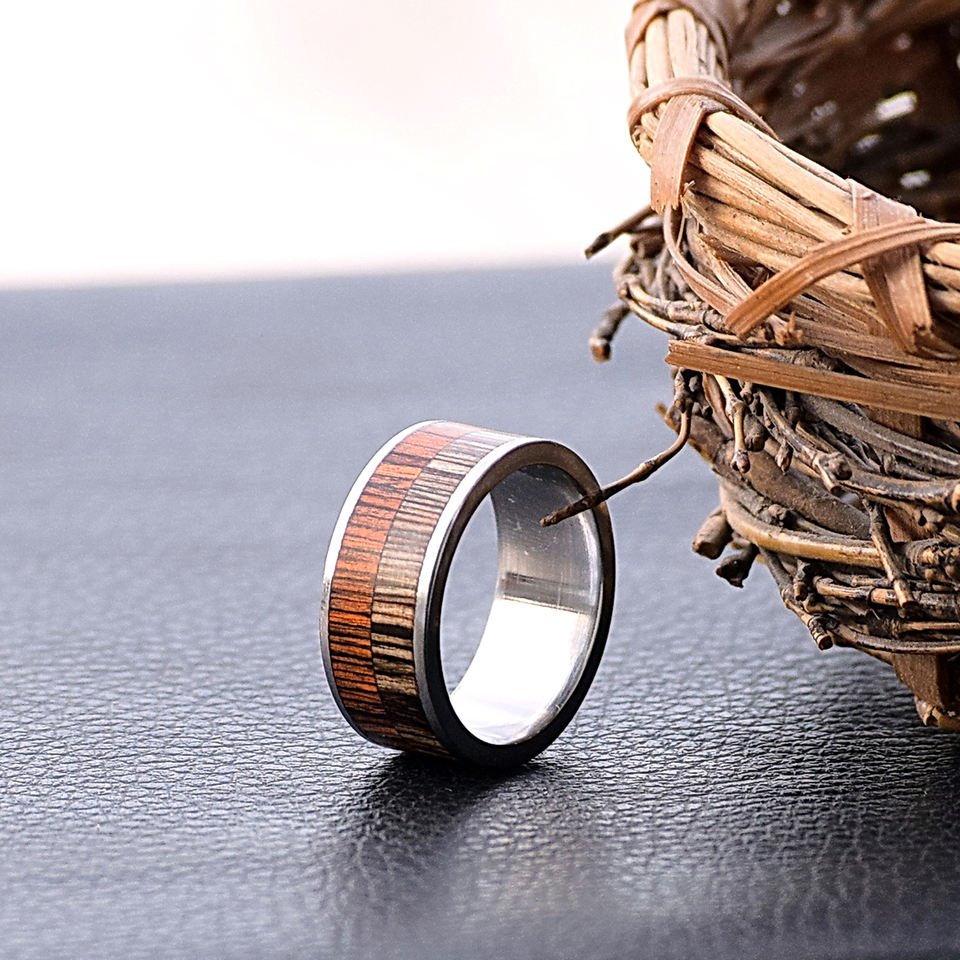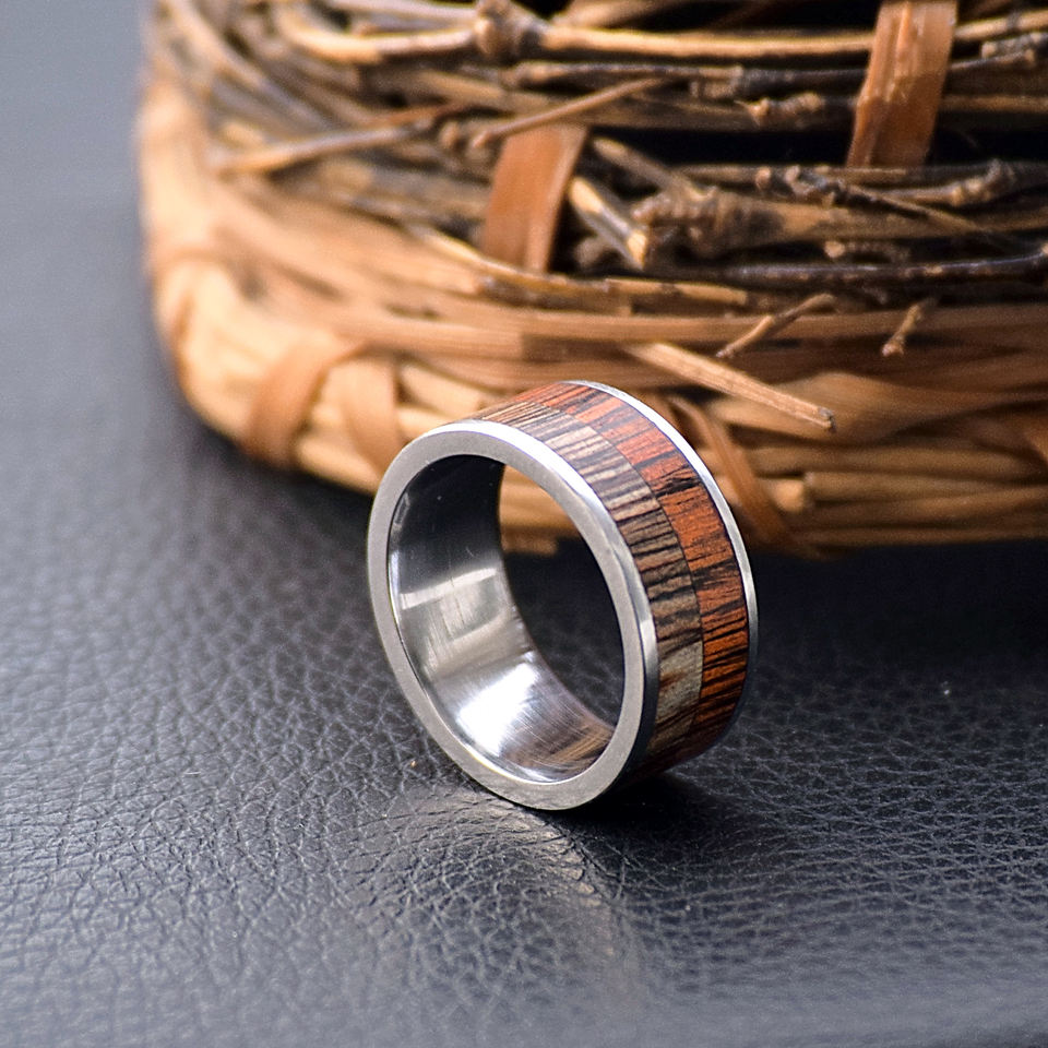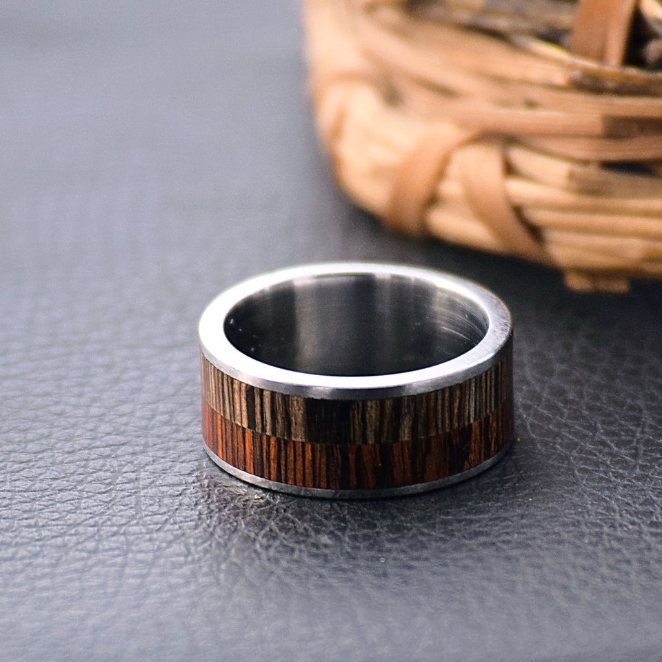 แหวนแต่งงานเหล็กดามัสกัสทำด้วยมือ/แหวนหมั้นสำหรับผู้ชายทำด้วยมือทำจากสเตนเลสงานไม้