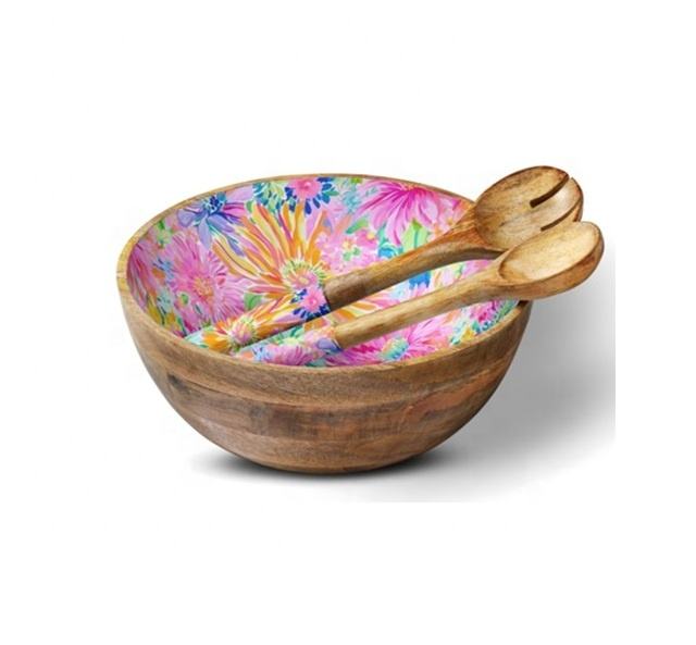 Direct Manufacturer's Large Solid Wood Salad Bowl with Glossy Enamel Finishing Hand-Applied Elevates Dining Experience