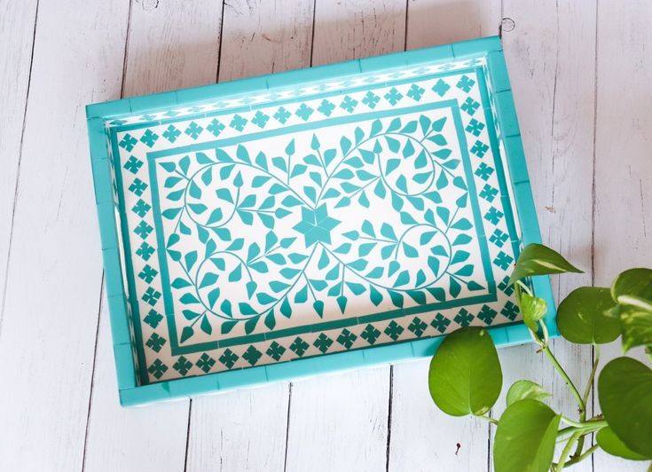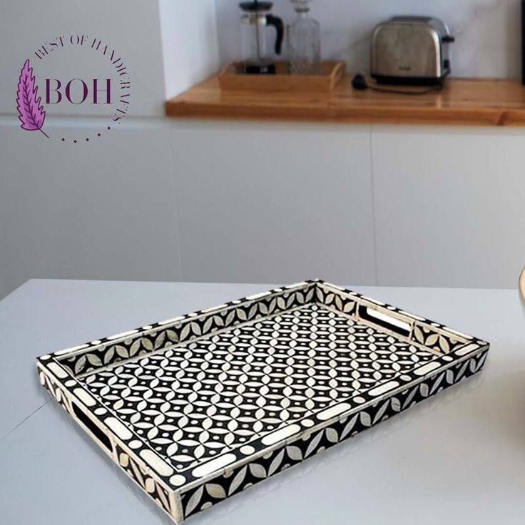 ถาดเสิร์ฟงานฝีมืออินเดียคุณภาพจากผู้ผลิตโดยตรง ดีไซน์หรูหรา ประดับด้วยงานฝังกระดูก ทันสมัย ทนทาน ใช้เป็นถาดกาแฟตกแต่งได้