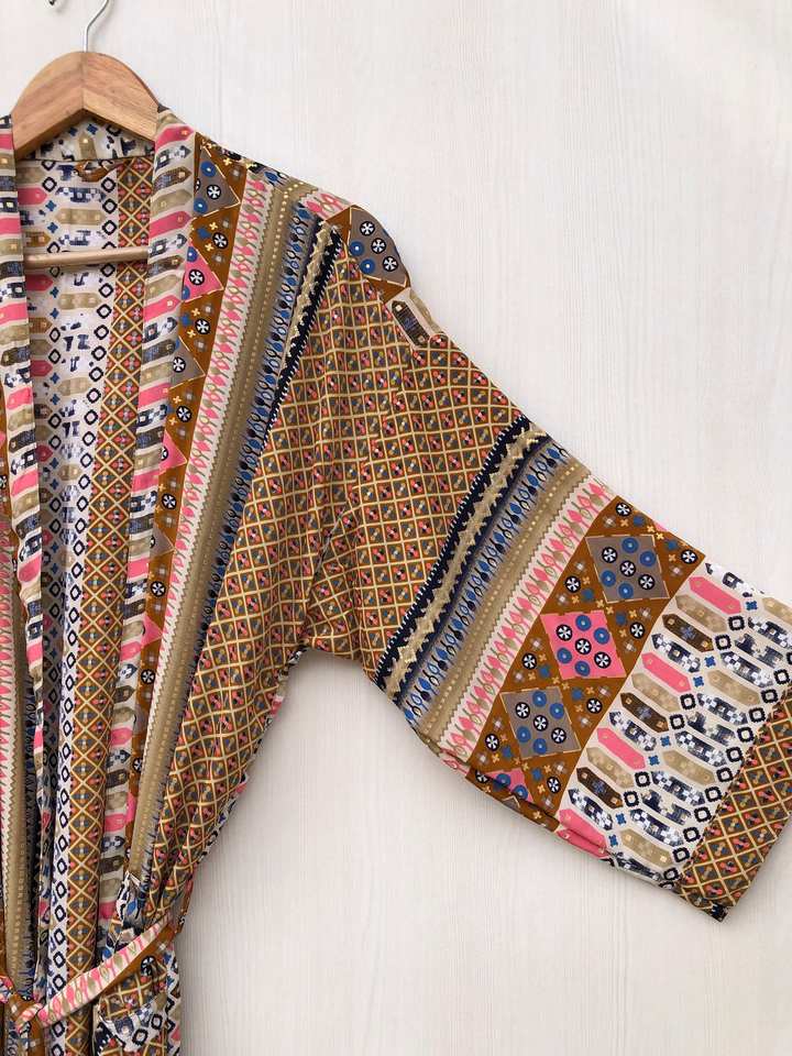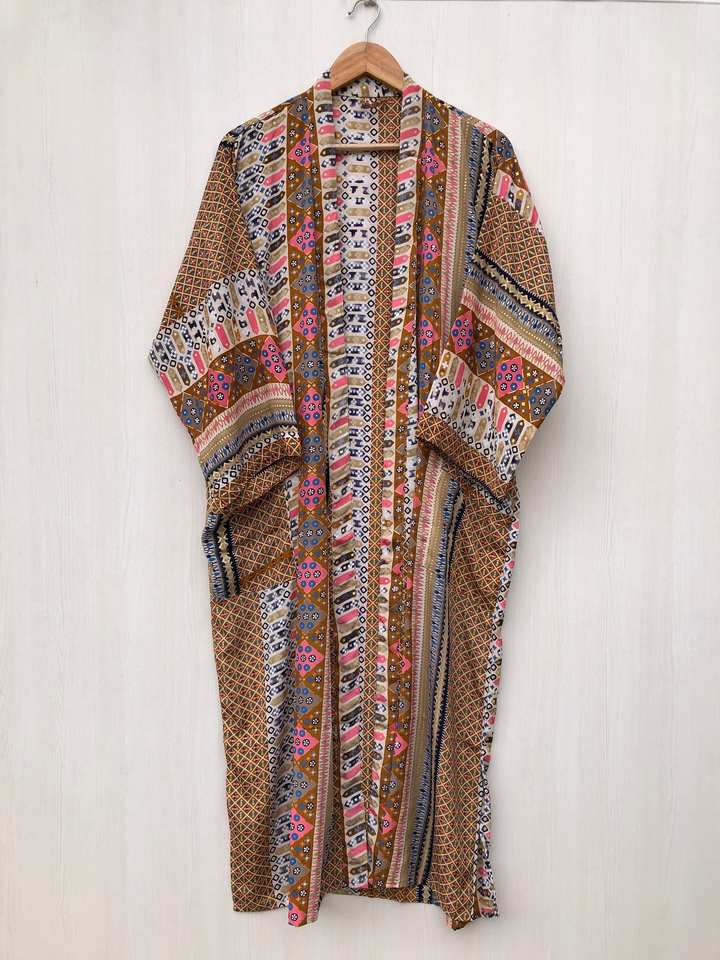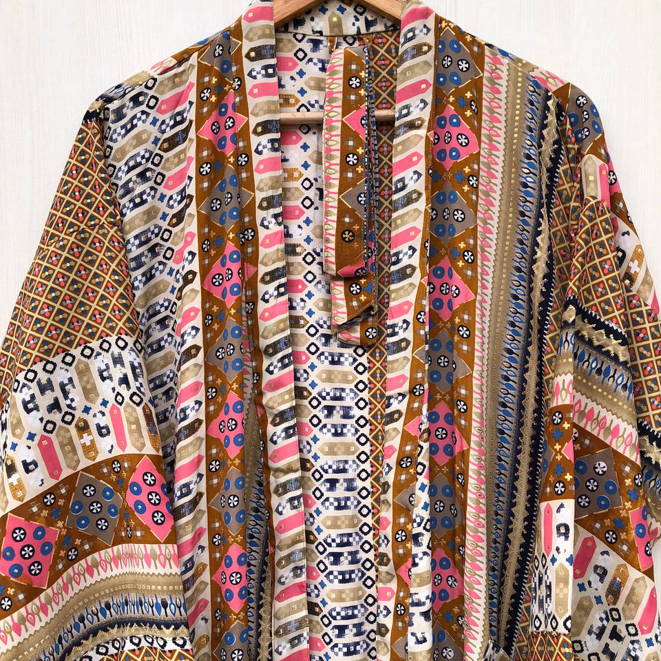 ชุดกิโมโนผ้าไหมสไตล์วินเทจทำมือจากอินเดียสำหรับผู้หญิง ชุดลำลองใส่ชายหาด ชุดนอน ชุดมุสลิมแบบดั้งเดิม จัดจำหน่ายโดยตรงแบบ ODM