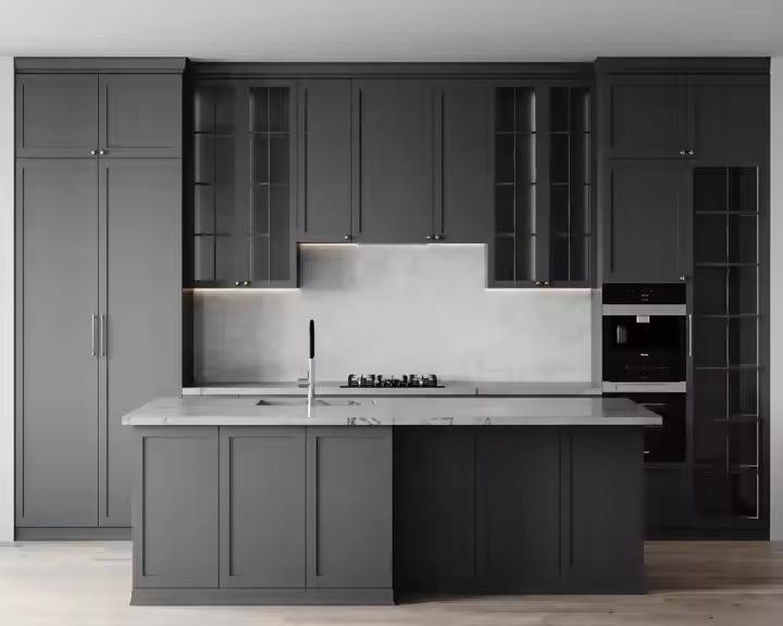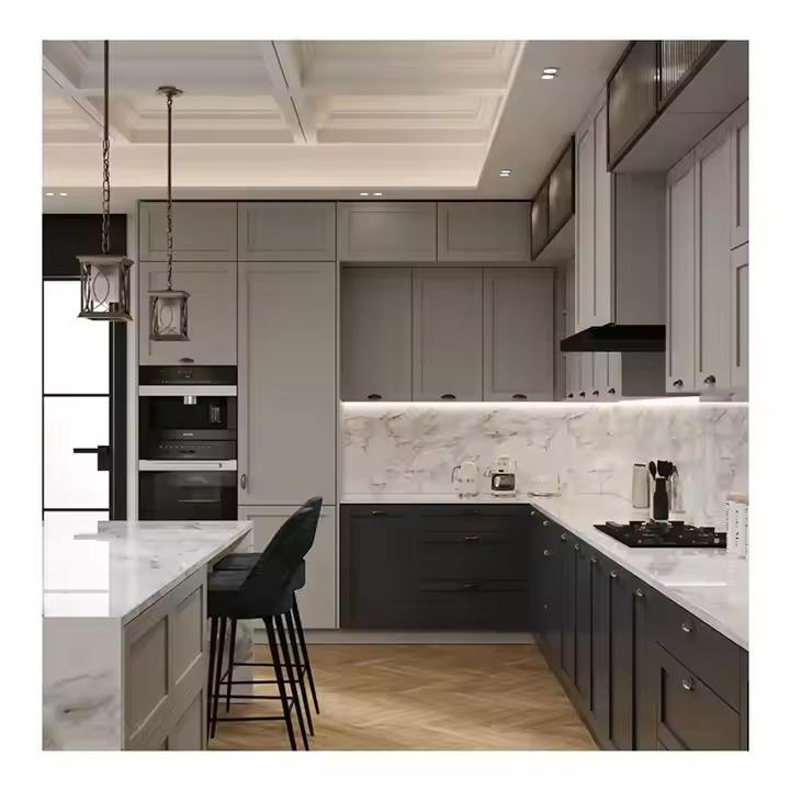 ตู้ครัวไม้แข็งมัลติฟังก์ชันทันสมัยทำเองสำหรับมืออาชีพใหม่
