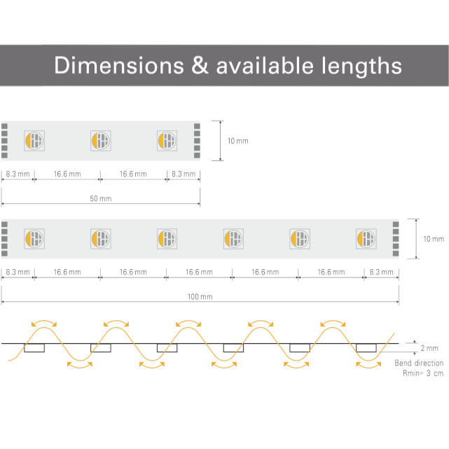 Step Length (mm/x LED):50mm/ 3LEDs, 100mm/ 6LEDs