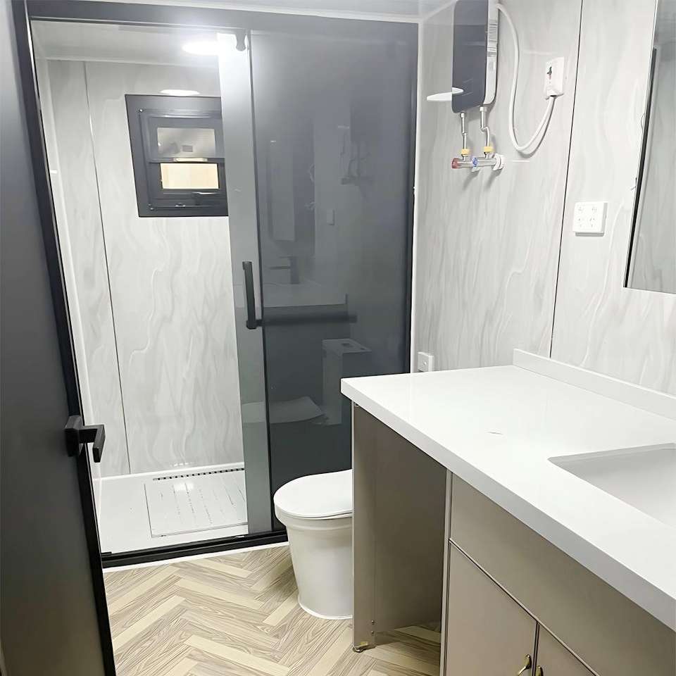 บ้านคอนเทนเนอร์สำเร็จรูปขนาด 20 ฟุต แบบพับได้ ขยายได้ ป้องกันเสียงรบกวน สำหรับขายตรง รุ่นโมเดิร์น