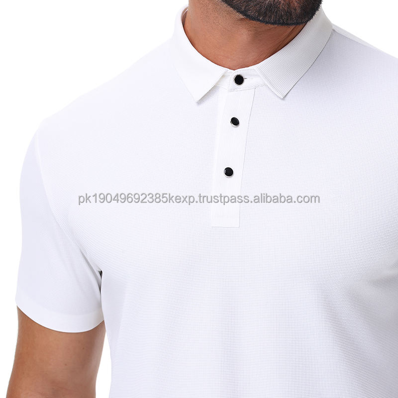 เสื้อโปโลไร้รอยต่อสีขาวจากแหล่งรังสีต้านเชื้อแบคทีเรียและรังสียูวีเหมาะสำหรับกิจกรรมกอล์ฟและการขี่ม้า