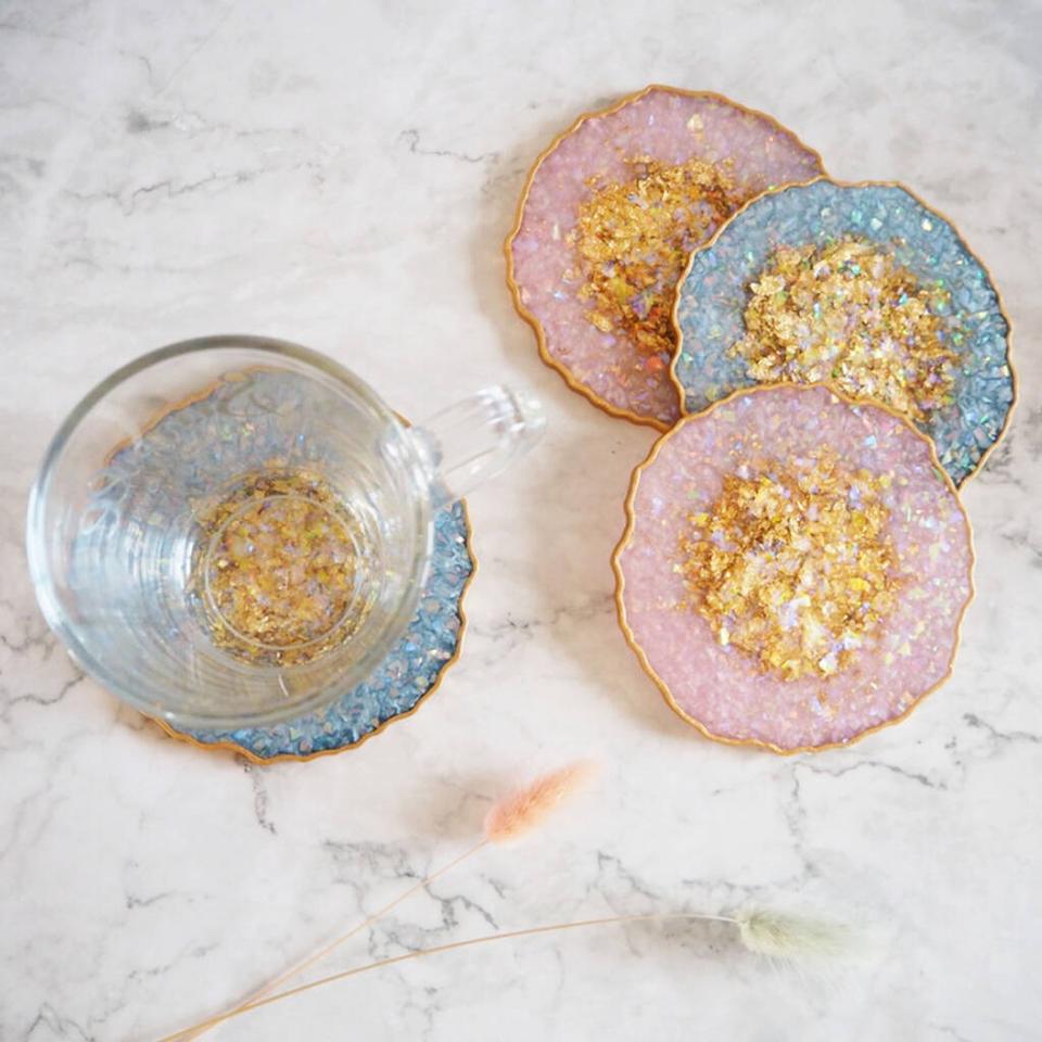 ถาดรองแก้วเรซินความร้อนหลากสีแบบคลาสสิกแผ่นรองแก้วสำหรับดื่มในครัว