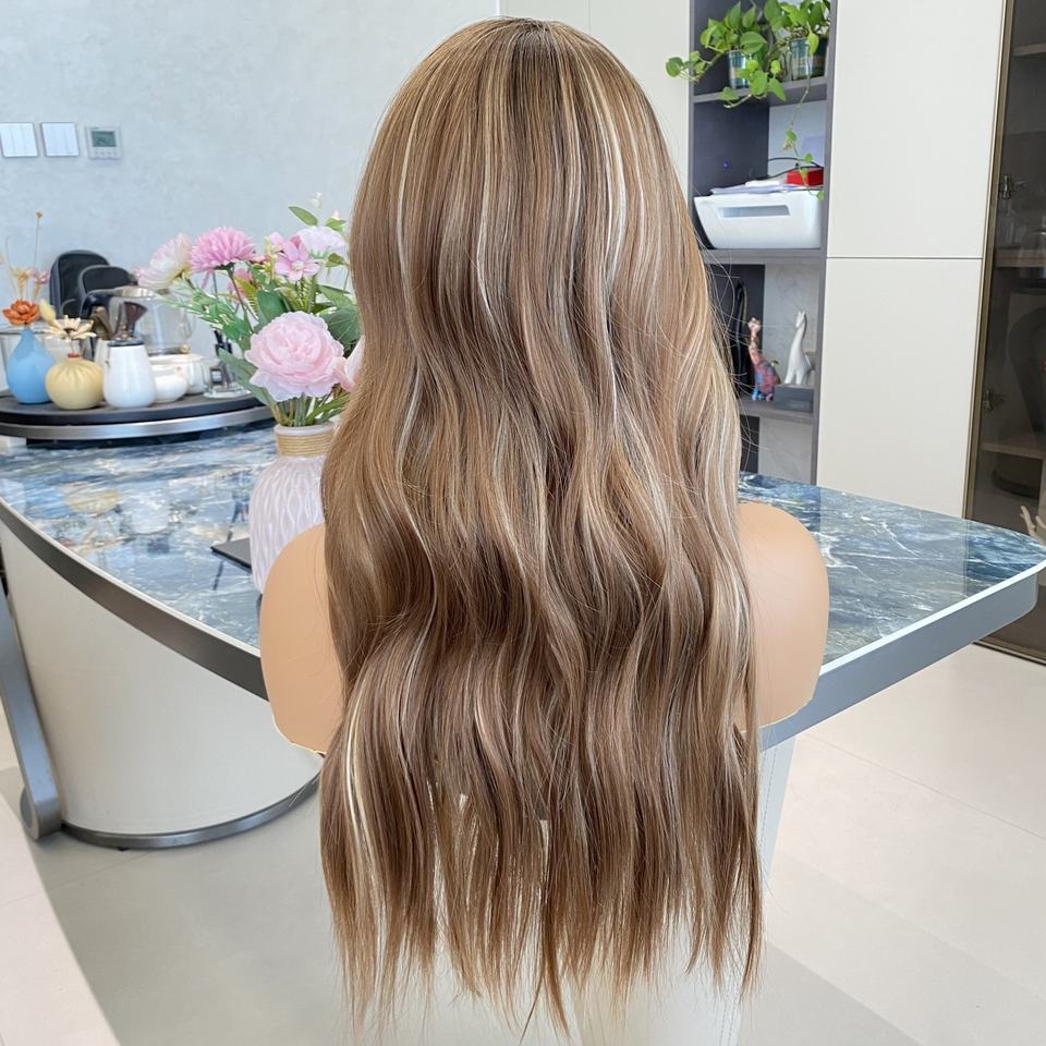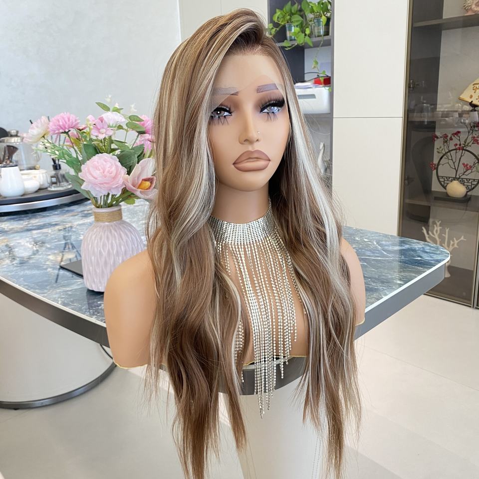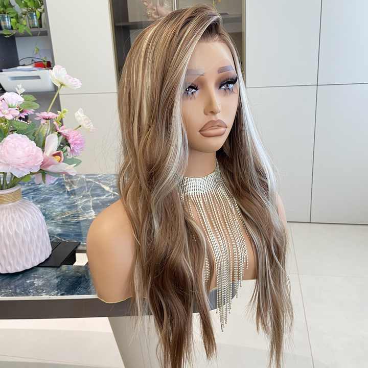 วิกผมสังเคราะห์แบบยาวลอน 13x4 พร้อมเชือกผูกด้านหน้า คุณภาพสูง สีน้ำตาลเข้ม ทนความร้อน แสกข้างได้ วิกไฟเบอร์