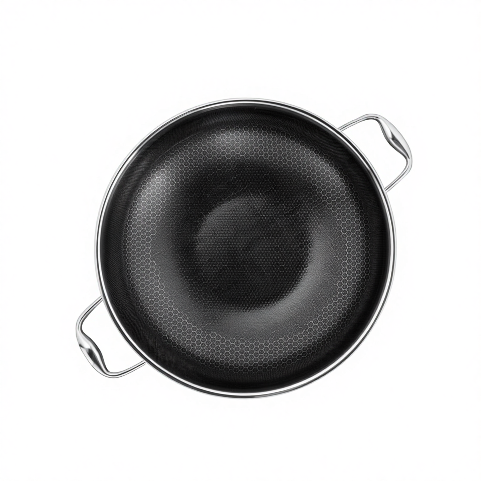 กระทะทอดแบบไม่ติดกระทะ ขนาด 32 ซม. แบบสามชั้น ลายรังผึ้ง ใช้ได้กับเตาแม่เหล็กไฟฟ้าและเตาแก๊ส