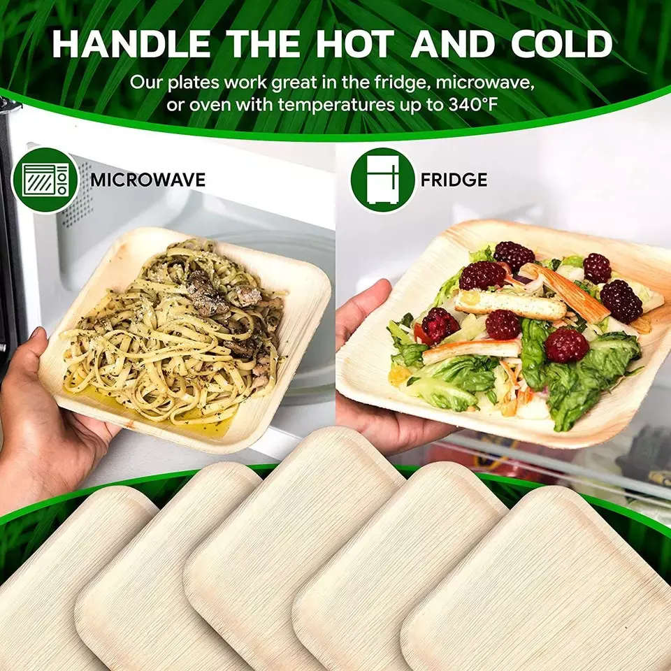 จานใส่อาหารทรงสี่เหลี่ยมลายต้นปาล์มแบบใช้แล้วทิ้งสั่งทำได้หลากหลายรูปทรง