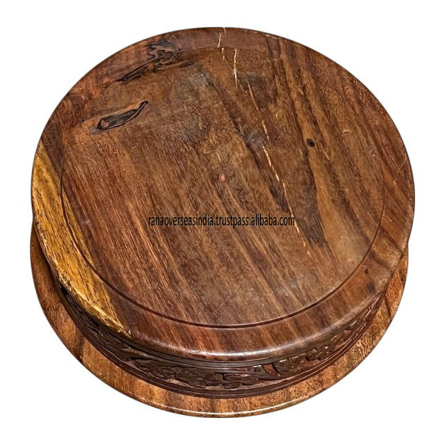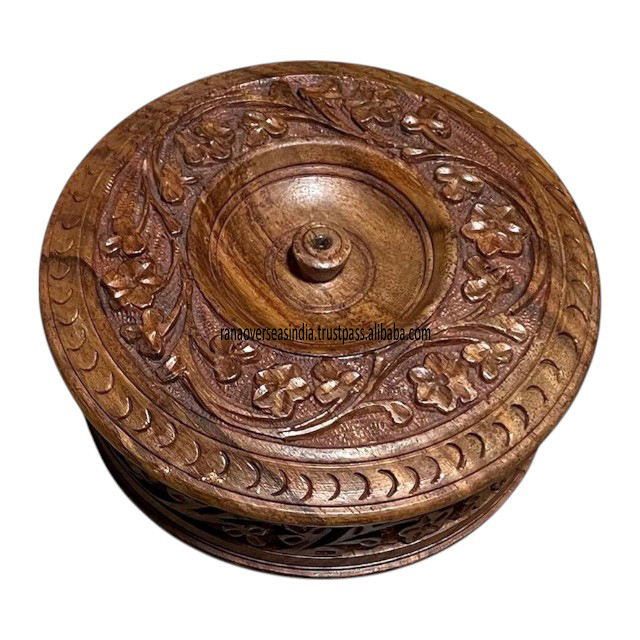 Product Name:Carved Floral Wooden Roti Box with Lid