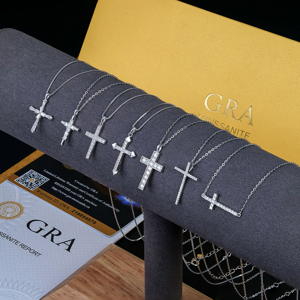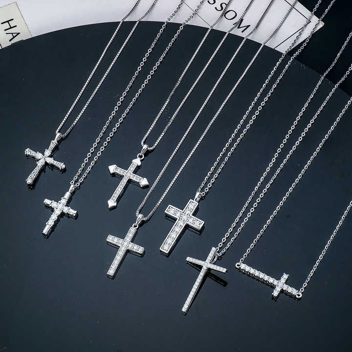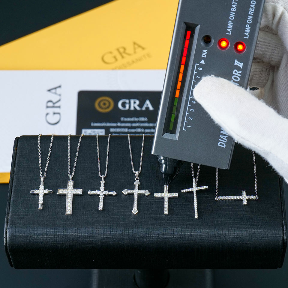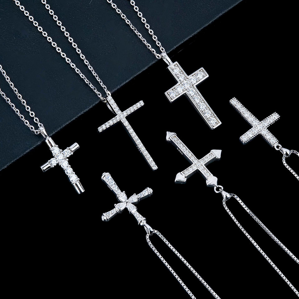 จี้เงินแท้ S925 รูปกางเขน ประดับเพชรโมอิสซาไนต์ทรงเหลี่ยมเจียระไนวิบวับ VVS1 พร้อมสร้อยคอคาทอลิก สีขาว