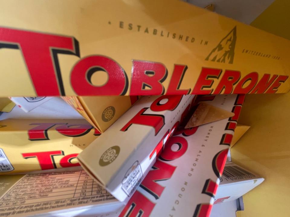 ขายส่งโดยตรง ช็อกโกแลตแท่งโทบเลอโรน แบบมีถั่ว 3 ก้อน ขนาด 100 กรัม ต่อชิ้น