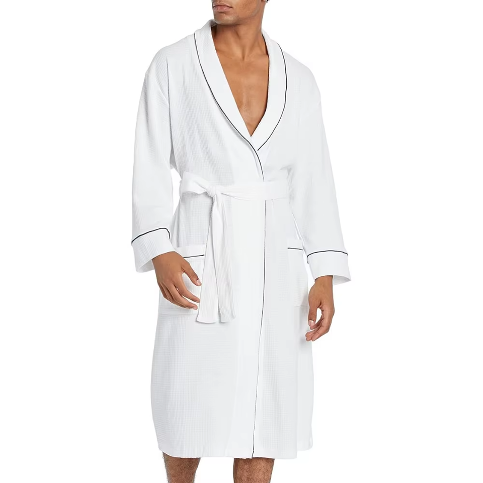 ชุดนอนผู้ชายผ้าฝ้ายเทอร์รี่ทอลายย้อมสีล้วนระบายอากาศเซ็กซี่ลายพื้นไซส์ใหญ่พิเศษจากโรงงาน100%