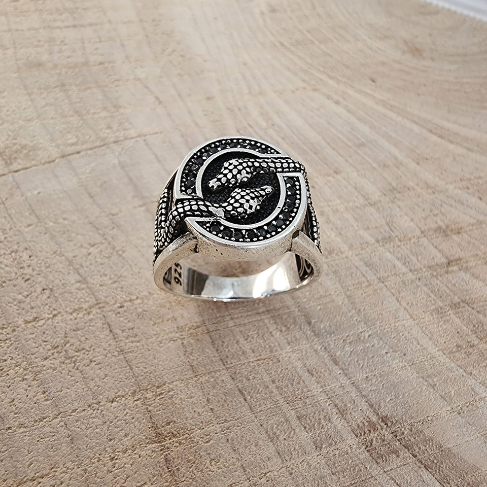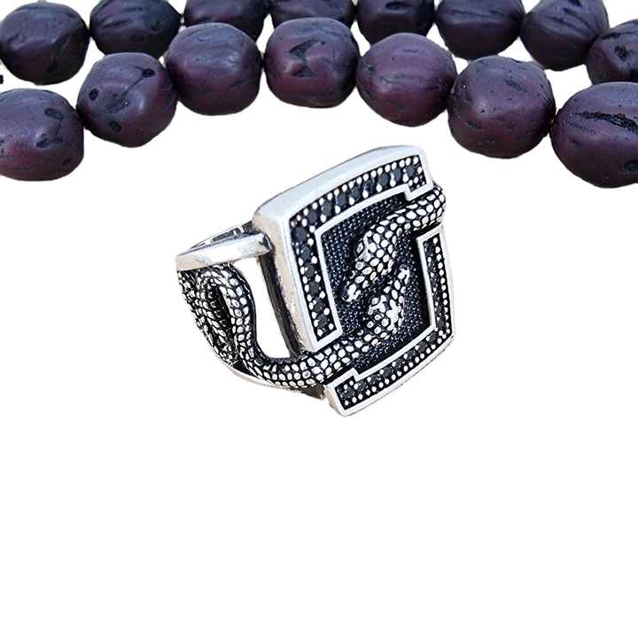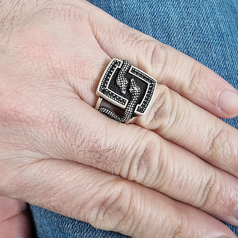 Dirilis งูสี่เหลี่ยมรอบสีดำเพทายแหวน925เครื่องประดับเงินขายส่งแหวนเงินสำหรับผู้ชายศิลปะการออกแบบปรับแหวนเครื่องประดับ