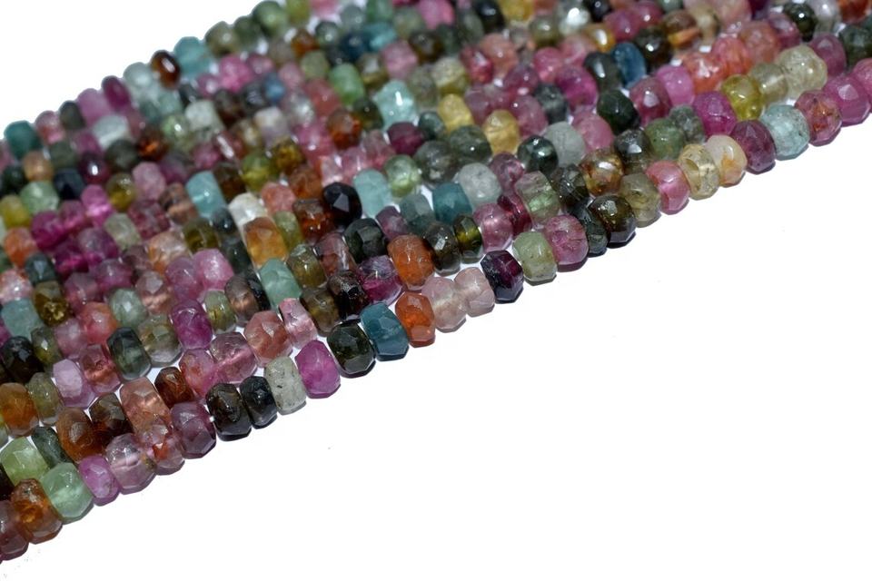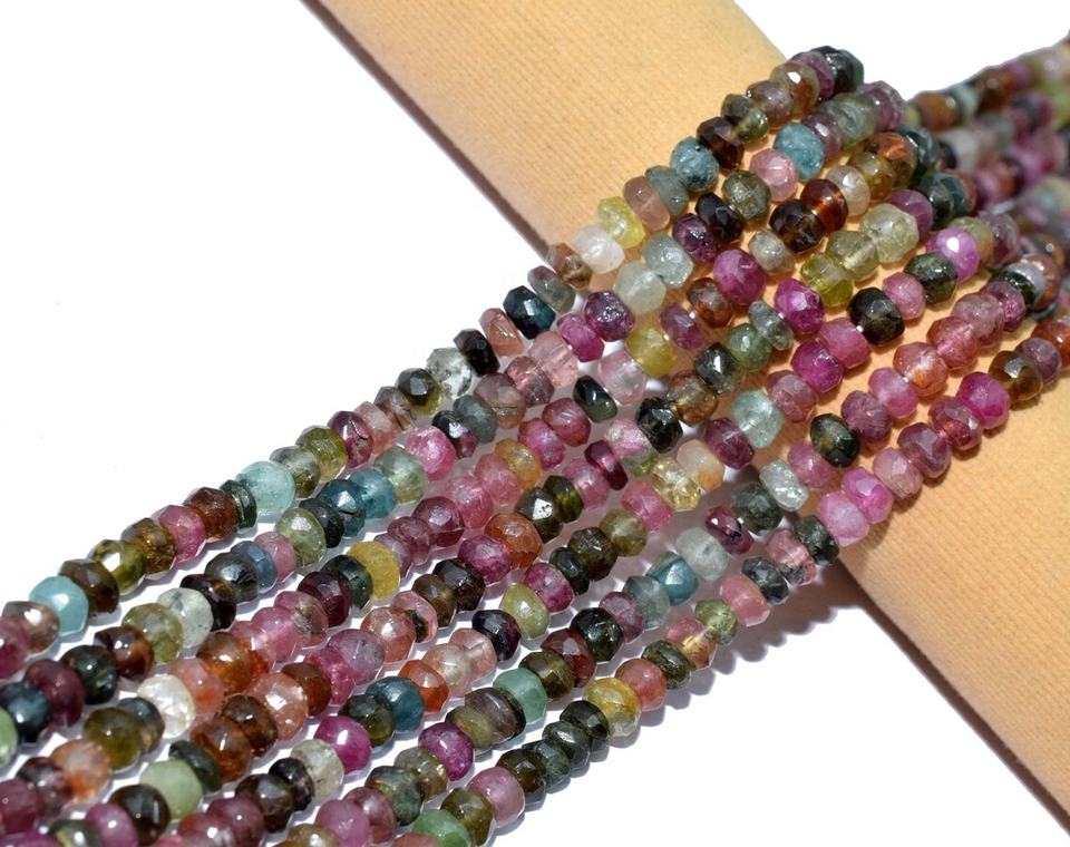 ลูกปัดอัญมณีธรรมชาติสำหรับทำเครื่องประดับลูกปัดทัวร์มาลีนหลายเหลี่ยมเพชรพลอย