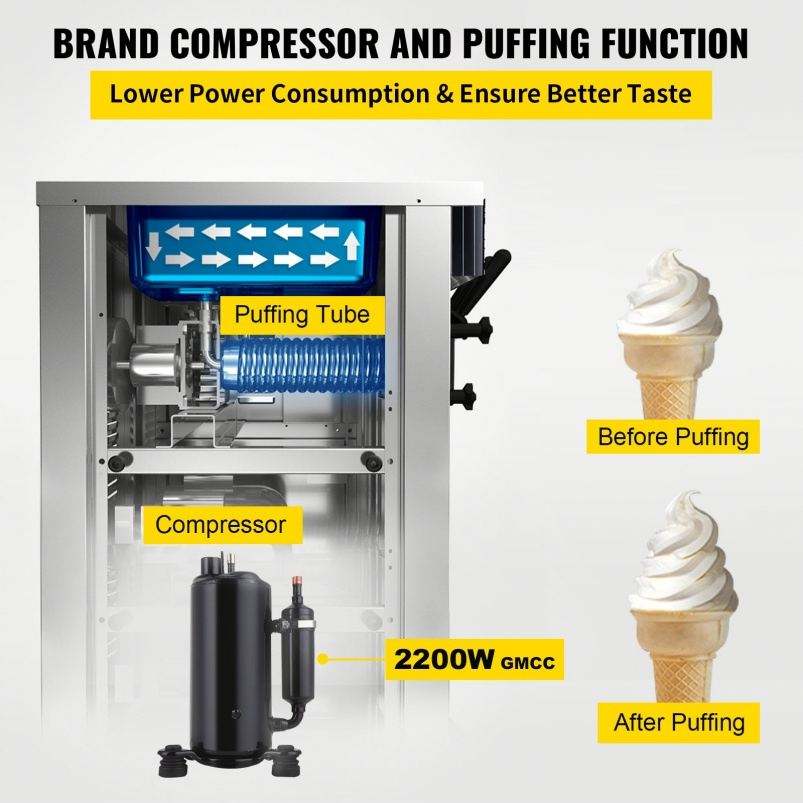 เครื่องทำไอศกรีม20-28L/ชม. 3รสชาติเครื่องทำไอศกรีมทองแดงสแตนเลส
