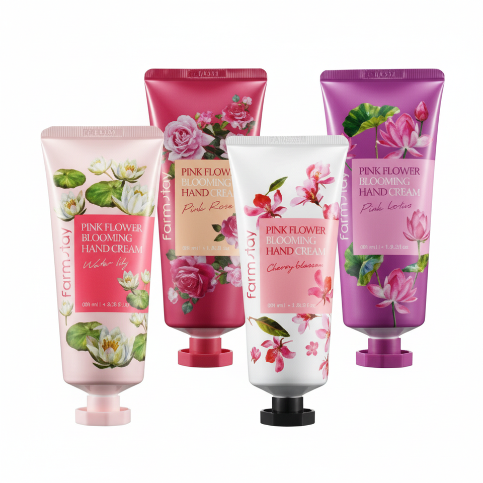 ครีมทามือ100มล. และโลชั่นสีชมพูดอกปาล์มและดอกซากุระบานผลิตภัณฑ์เดียว