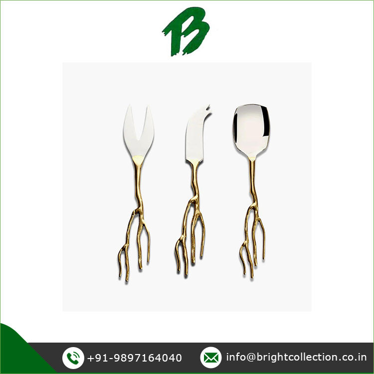 ชุดเครื่องมือชีสสีเงินด้ามจับทองเหลืองคุณภาพดีเยี่ยมสำหรับภาชนะใส่อาหารมีจำหน่ายสำหรับผู้ซื้อจำนวนมาก