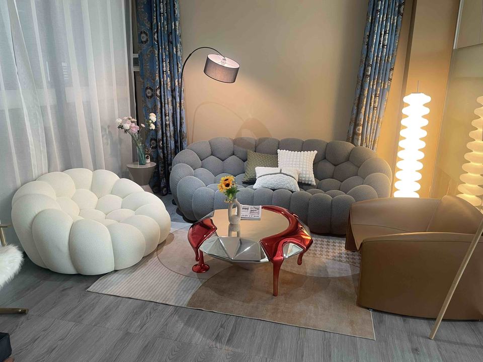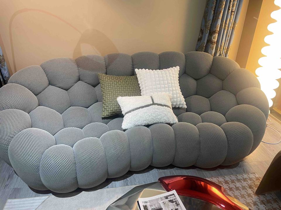 เฟอร์นิเจอร์ดีไซน์ทันสมัย โซฟาผ้าบับเบิ้ลสไตล์ฝรั่งเศสสั่งทำพิเศษสุดหรู รูปทรงลูกบอลยอดนิยมสำหรับห้องนั่งเล่น