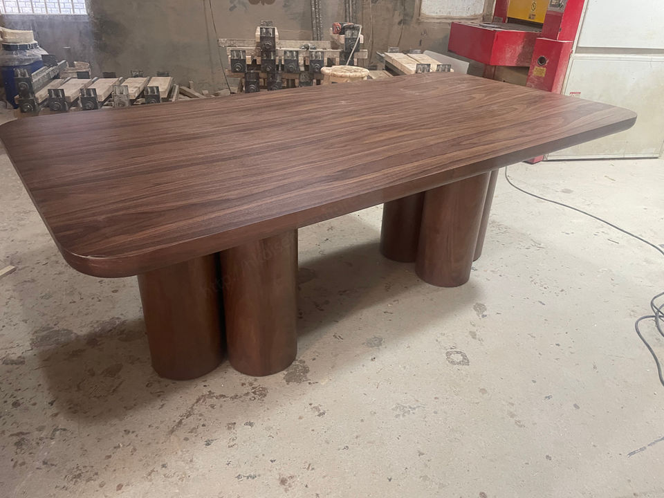 Disen โต๊ะรับประทานอาหารในร่มสุดหรูโต๊ะรับประทานอาหารเฟอร์นิเจอร์ไม้เนื้อแข็งโต๊ะรับประทานอาหารสี่เหลี่ยมผืนผ้าสามขา