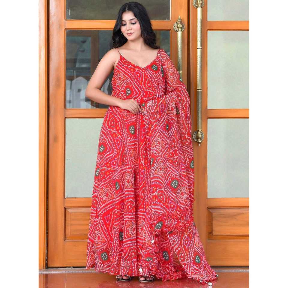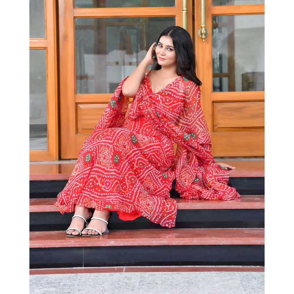 Disha XS ชุดสูทสีแดงซาลวาร์กาเมซผ้าชีฟองแท้
