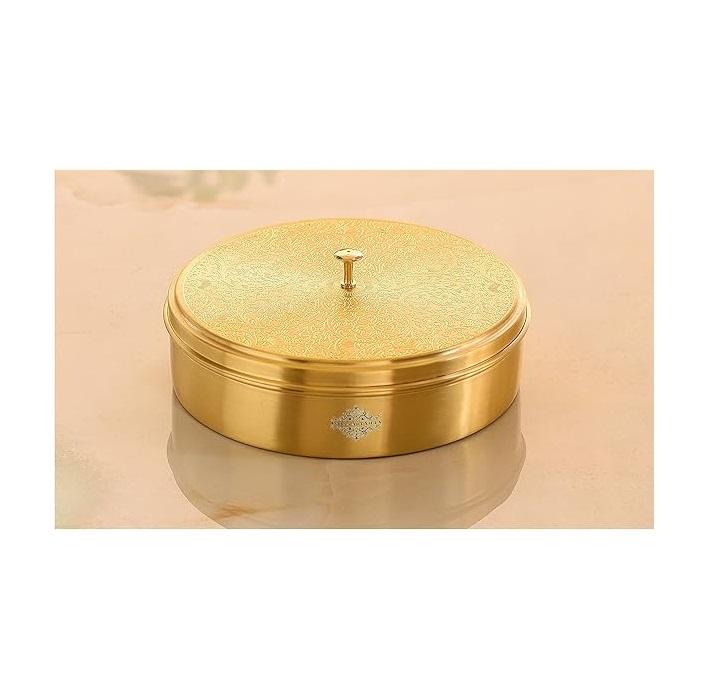 กล่องชาปาตีทองเหลืองแท้ 100% สำหรับขายส่ง ใช้กับเครื่องล้างจานได้ รูปทรงกลม สำหรับใช้ในบ้าน โรงแรม ครัว ภาชนะสำหรับทำอาหาร หม้อตุ๋น
