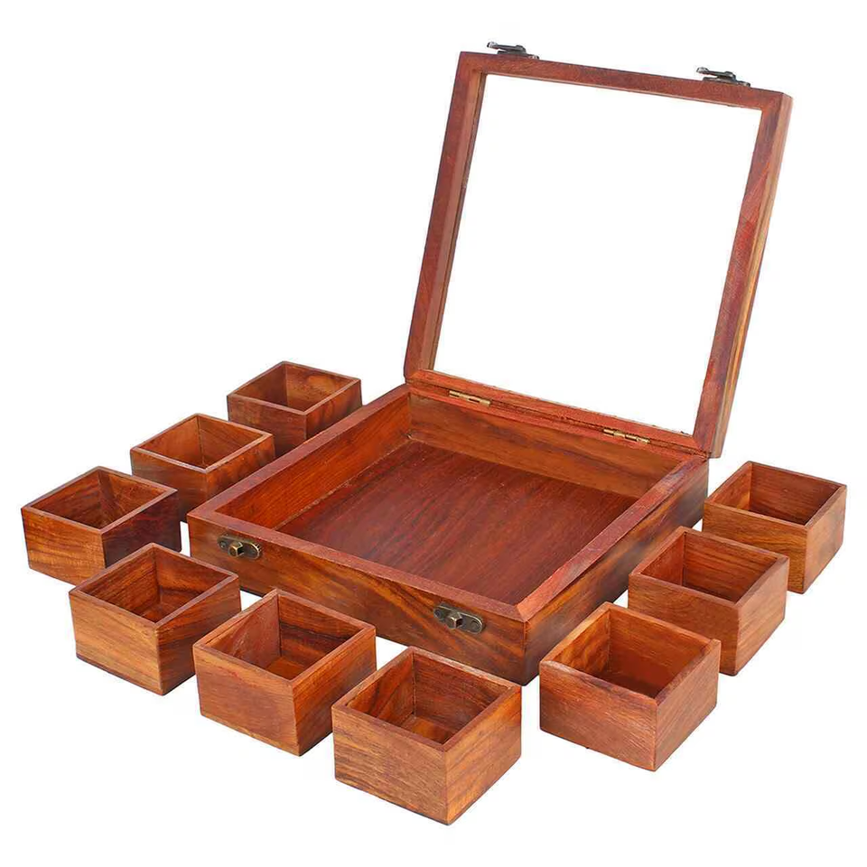 กล่องใส่เครื่องเทศไม้สำหรับทำอาหาร ปลอดภัยสำหรับเครื่องล้างจาน มี 4 ช่องแบ่งพร้อมฝาปิดแบบโบราณ กล่องเครื่องเทศไม้ทำมือ