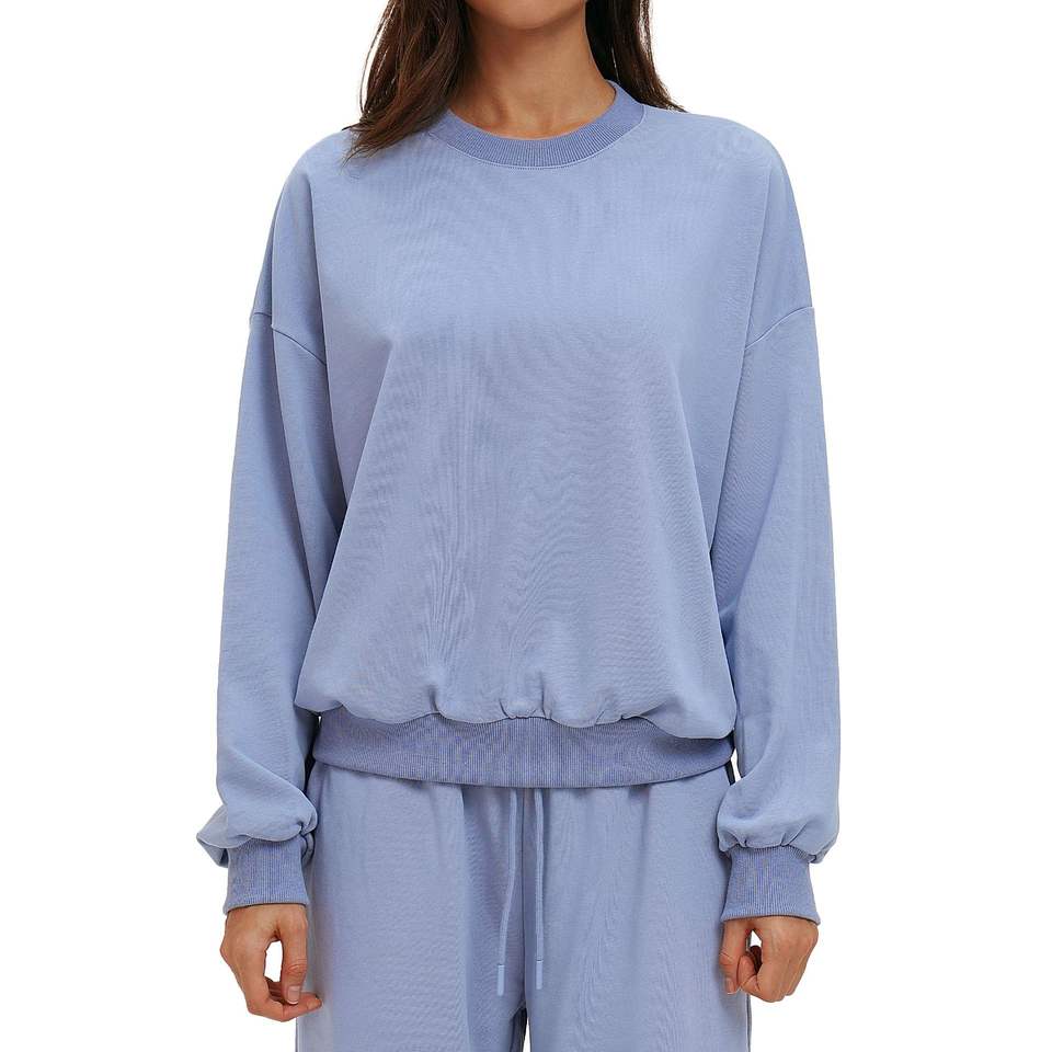 ดิสโก้ สปอร์ตเสื้อสเวตเตอร์คอกลมแขนยาวทรงหลวมระบายอากาศได้ดีสีทึบเสื้อผ้าลำลองสำหรับผู้หญิง 7025