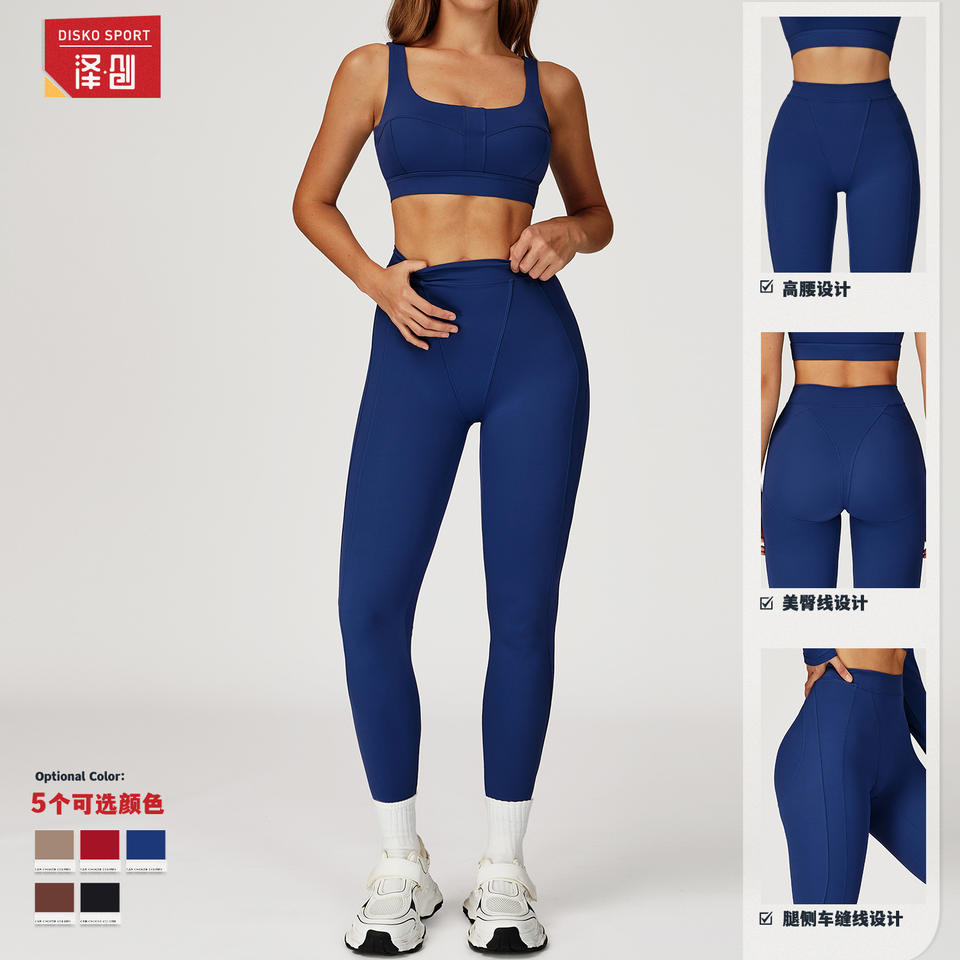 ดิสโก้ สปอร์ตกางเกงโยคะเอวสูงสำหรับผู้หญิงยืดได้สี่ทิศทางวิ่งออกกำลังกายขี่จักรยานกางเกงสีกรมท่า ECK4509