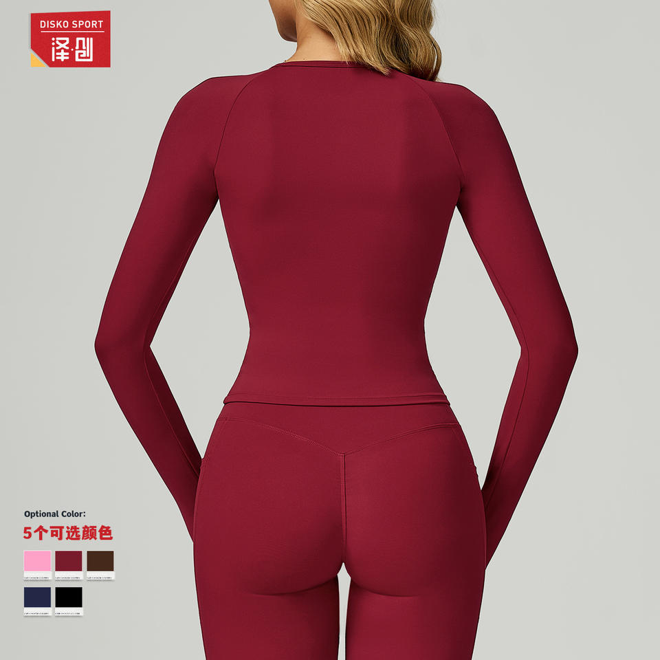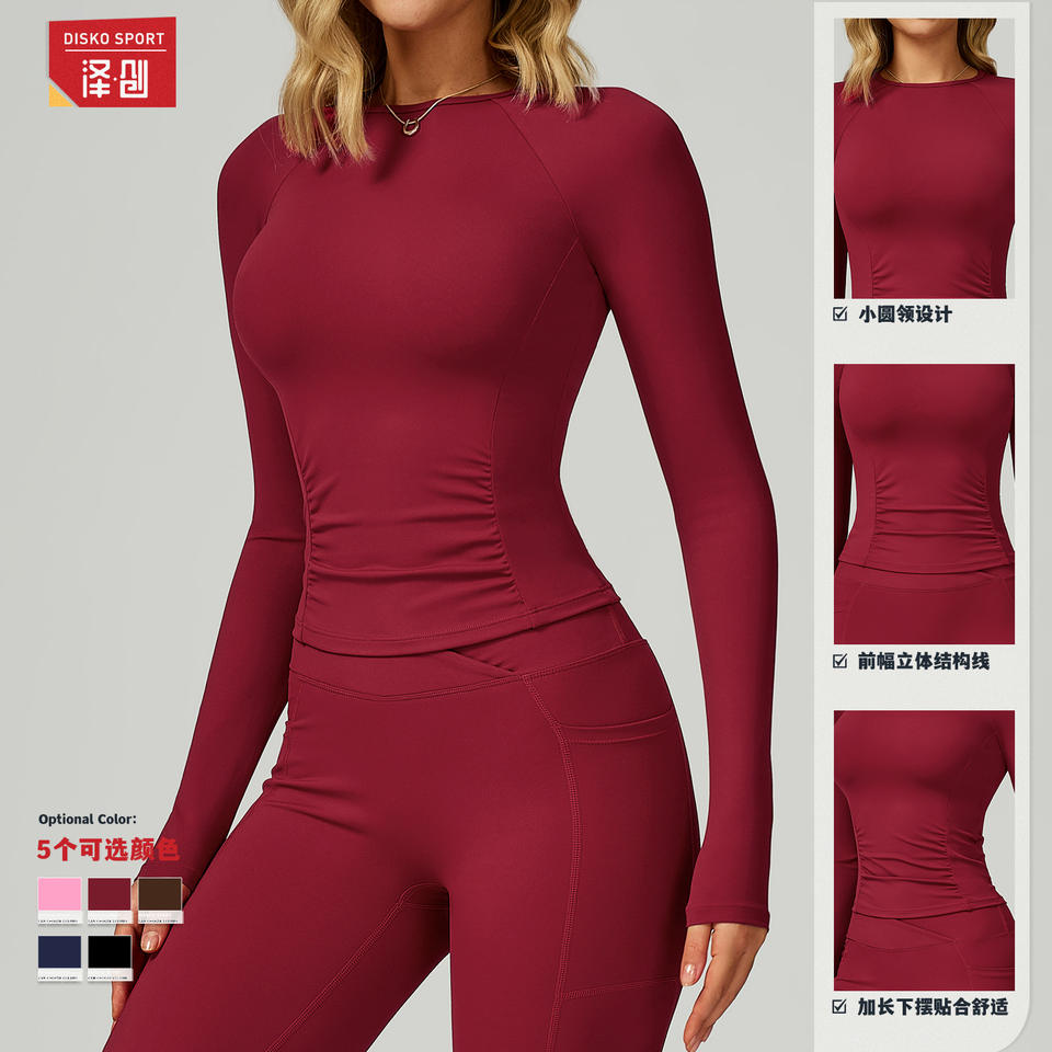 ดิสโก้ สปอร์ต เนด ฟีล โยคะ ท็อปคอกลมแขนยาวทรงสลิมฟิตชุดกีฬายืดหยุ่นสูงสำหรับผู้หญิง ECX2030