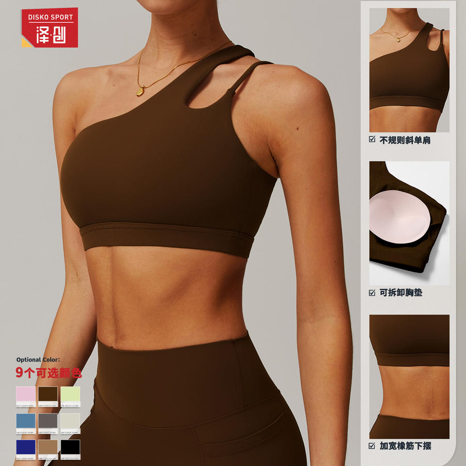 ดิสโก้ สปอร์ต วัน ชอลเดอร์ โยคะ บรา ท็อปสปอร์ตบราแบบมีโครงหนา ไนลอน สำหรับวิ่ง ฟิตเนส ไซส์ 8S10M12L14XL