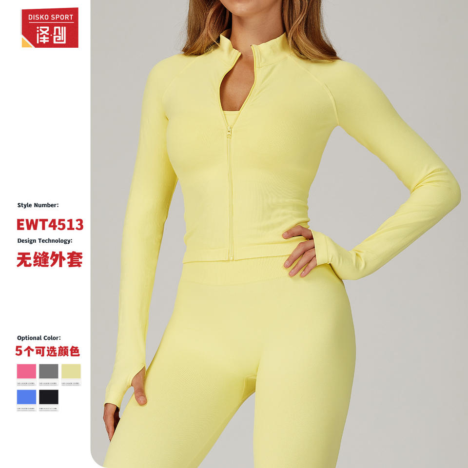 เสื้อแจ็คเก็ตโยคะดิสโก้ สปอร์ต ซีมเลส สแตนด์ คอลลาร์ แขนยาว กระชับรูปร่าง ชุดกีฬาผู้หญิง EWT4513