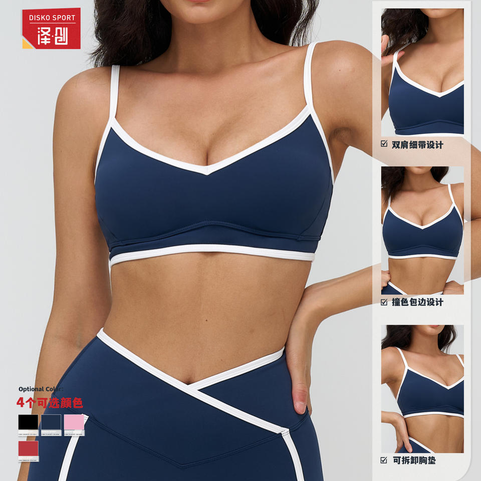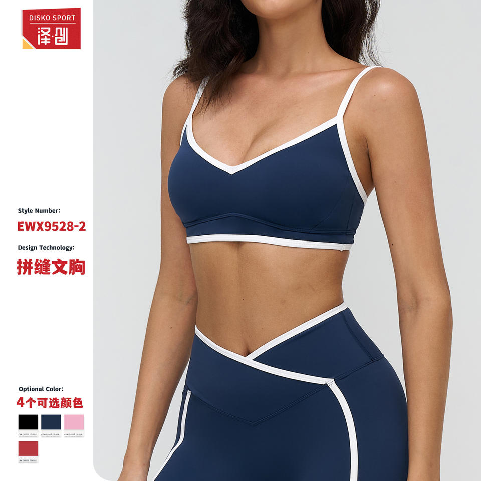 ดิสโก้ สปอร์ตสปอร์ตบราผู้หญิงคอวียูก้าวิ่งระบายอากาศได้ไนลอนสแปนเด็กซ์ EWX9528-2