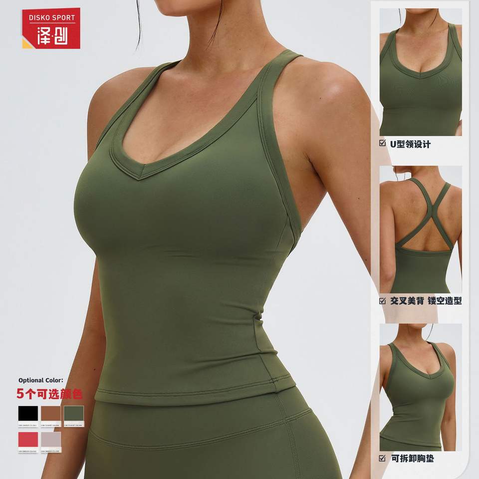 ดิสโก้ สปอร์ตเสื้อกีฬาผู้หญิงแบบไม่มีรอยต่อ เสื้อกีฬาคอกลมแขนกุดพร้อมแผ่นรองหน้าอกสำหรับวิ่งกลางแจ้ง 4516