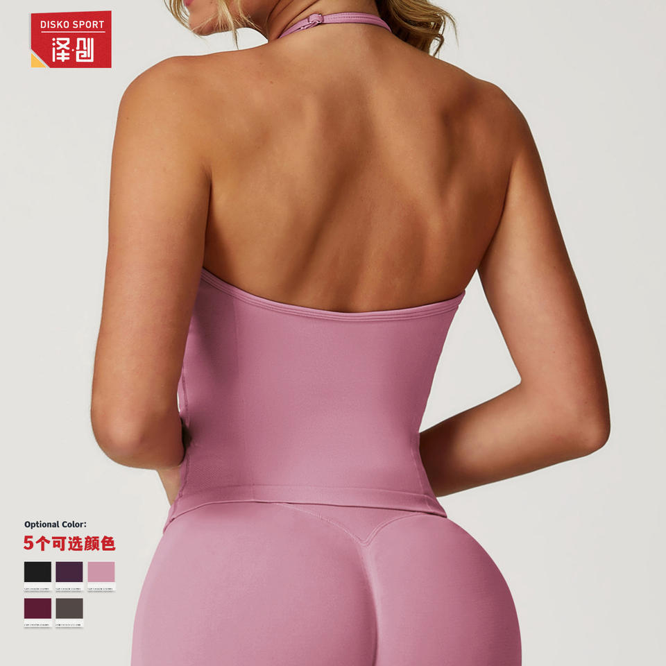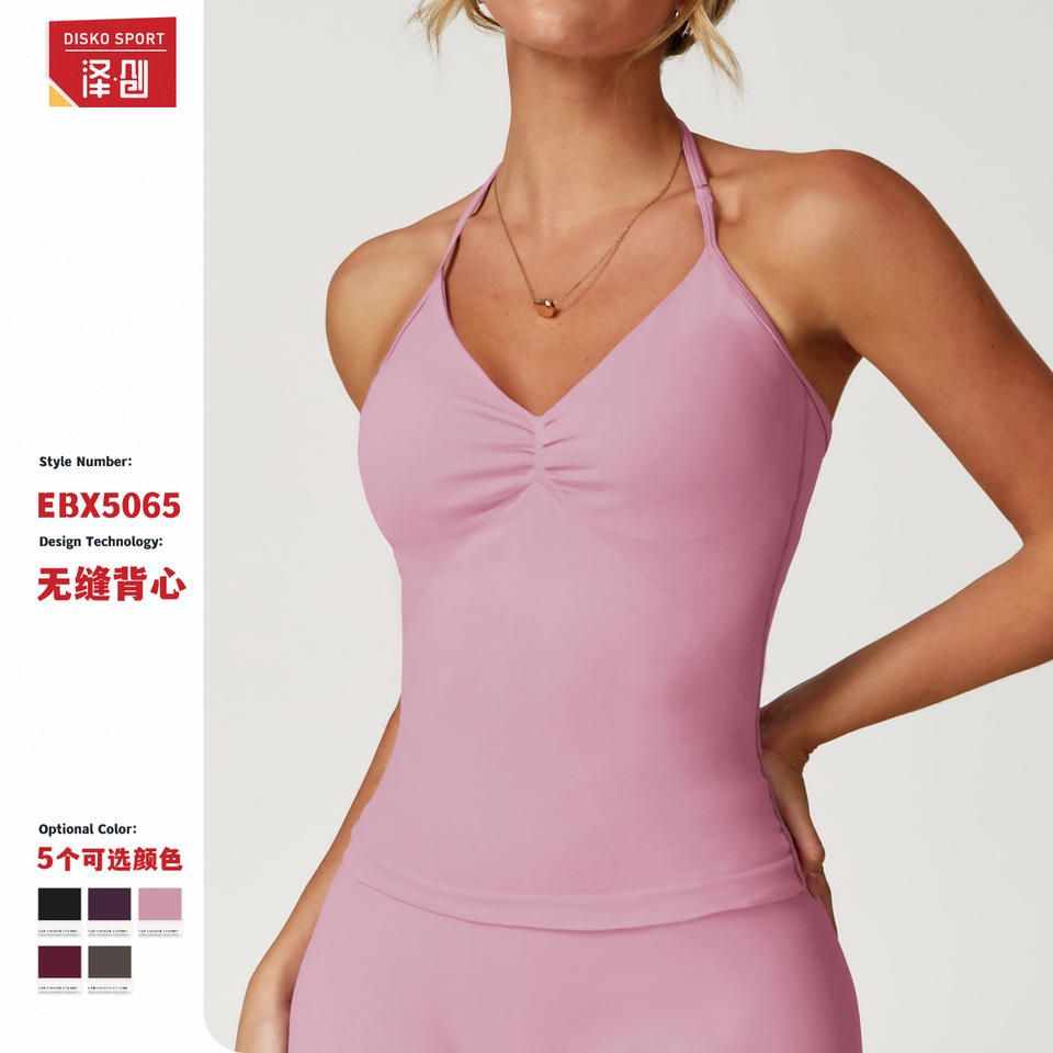 ดิสโก้ สปอร์ตเสื้อกล้ามโยคะผู้หญิงคอวีไร้ตะเข็บระบายอากาศได้ดีพร้อมสายรัดปรับได้และแผ่นรองแบบถอดได้ 5 สี
