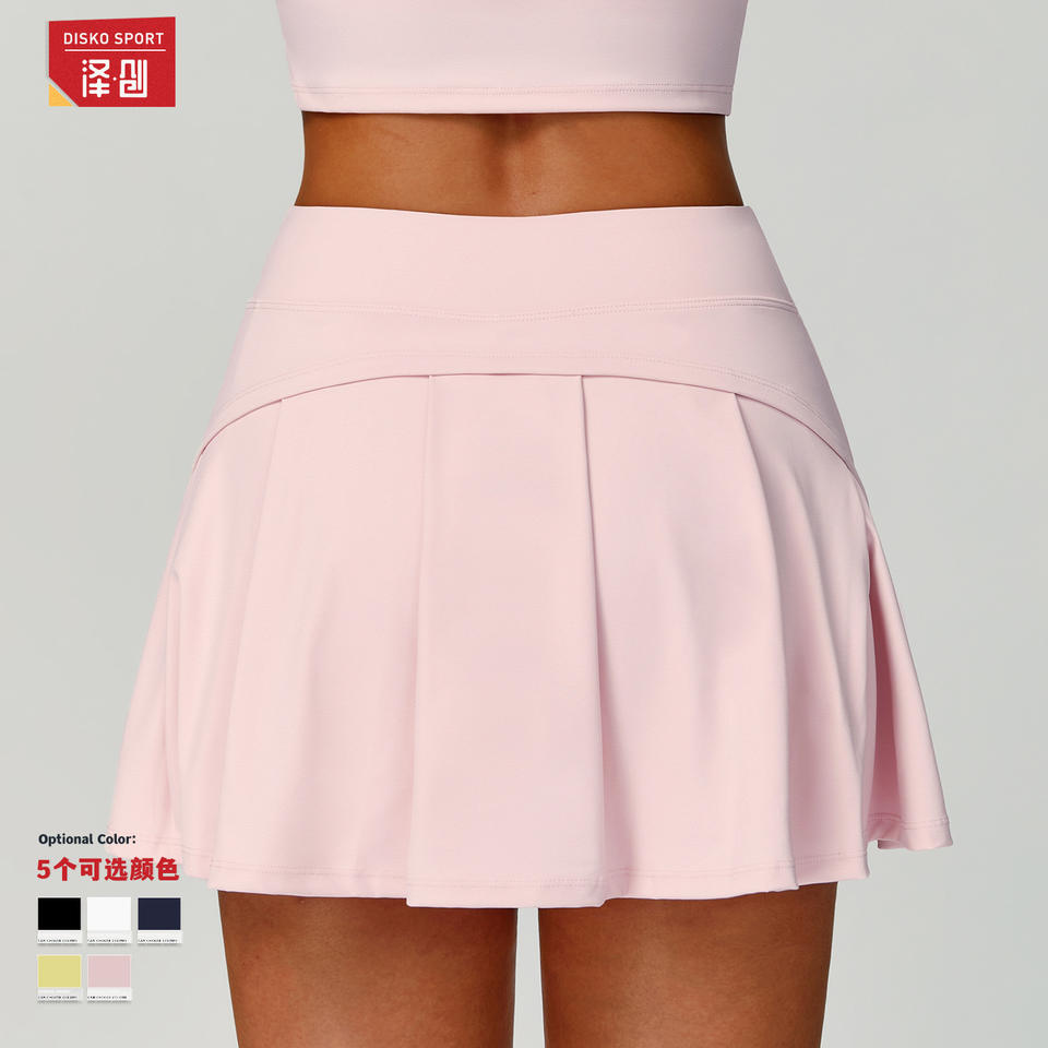 กระโปรงมินิทรงเอเอวสูงสำหรับผู้หญิง ยี่ห้อดิสโก้ สปอร์ต มีกระเป๋า สีพื้น สำหรับใส่เล่นกีฬาในฤดูร้อน
