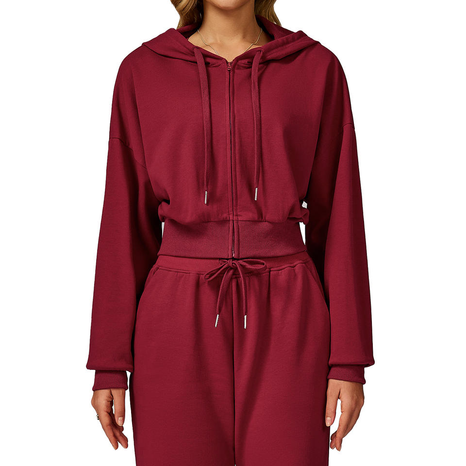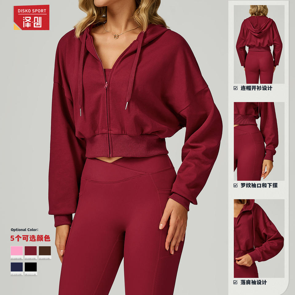 ดิสโก้ สปอร์ตเสื้อสเวตเตอร์มีฮู้ดผู้หญิงถักสีทึบฤดูใบไม้ร่วงฤดูหนาวลำลองหลวมพอดีวิ่งออกกำลังกายสวมใส่ EWY2030