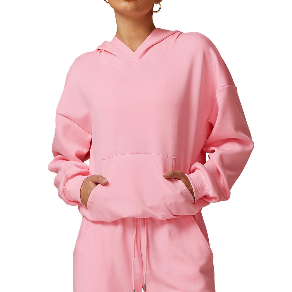 ดิสโก้ สปอร์ตเสื้อฮู้ดผู้หญิงแขนยาวถักสีทึบลำลองหลวมพอดีฤดูใบไม้ร่วงฤดูหนาวสวมใส่ 8952-2