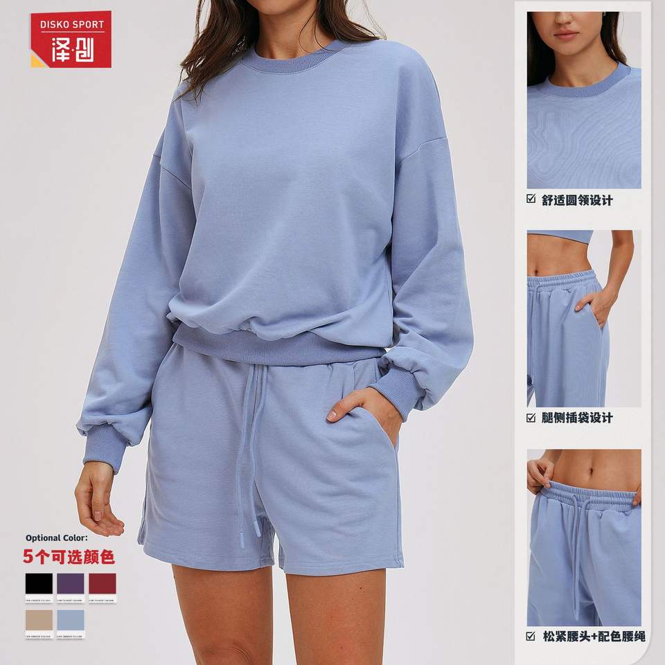 ดิสโก้ สปอร์ตชุดเสื้อสเวตเตอร์ผู้หญิงสีทึบถักแบบหลวมสำหรับวิ่งออกกำลังกายขี่จักรยานกิจกรรมกลางแจ้ง