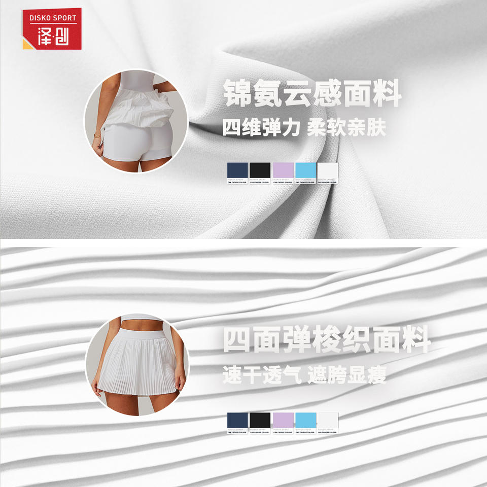 กระโปรงเทนนิสผู้หญิง Disko Sport เอวยางยืด ผ้าชีฟอง จีบระบาย สีขาว สีม่วงลาเวนเดอร์ สีน้ำเงิน ตราสัญลักษณ์ แบล็คสวอน คุณภาพสูง