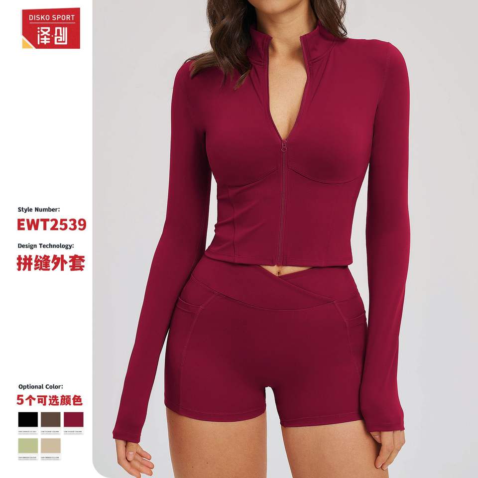 ดิสโก้ สปอร์ตเสื้อแจ็คเก็ตโยคะแขนยาวสำหรับผู้หญิง ดีไซน์ซิปคอตั้ง เสื้อกีฬา EWT2539