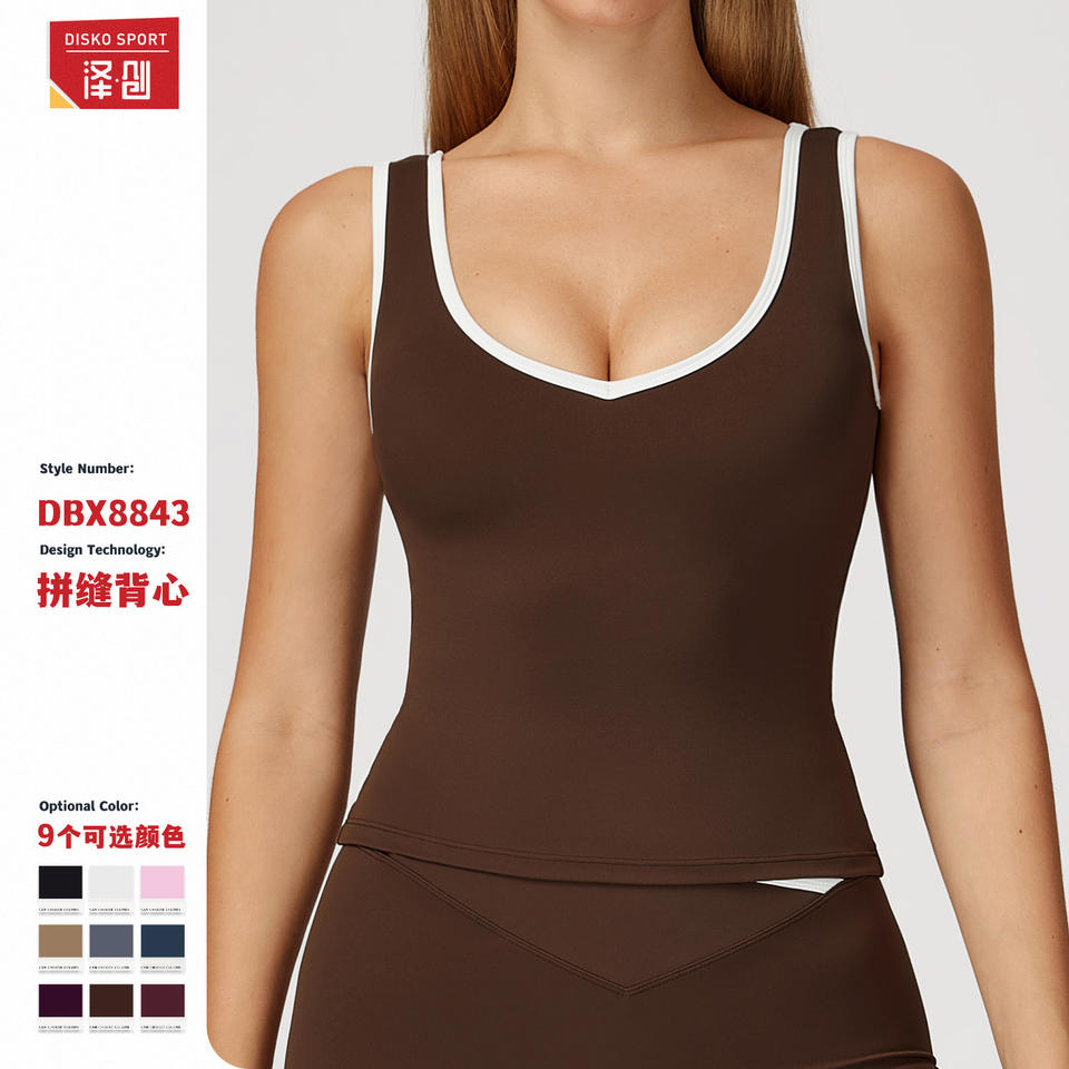 ดิสโก้ สปอร์ตเสื้อกีฬาคอวีสำหรับผู้หญิง เสื้อโยคะแบบไม่มีหลัง สีพื้น เสื้อออกกำลังกาย เสื้อคลุมด้านนอก รุ่น DBX8843