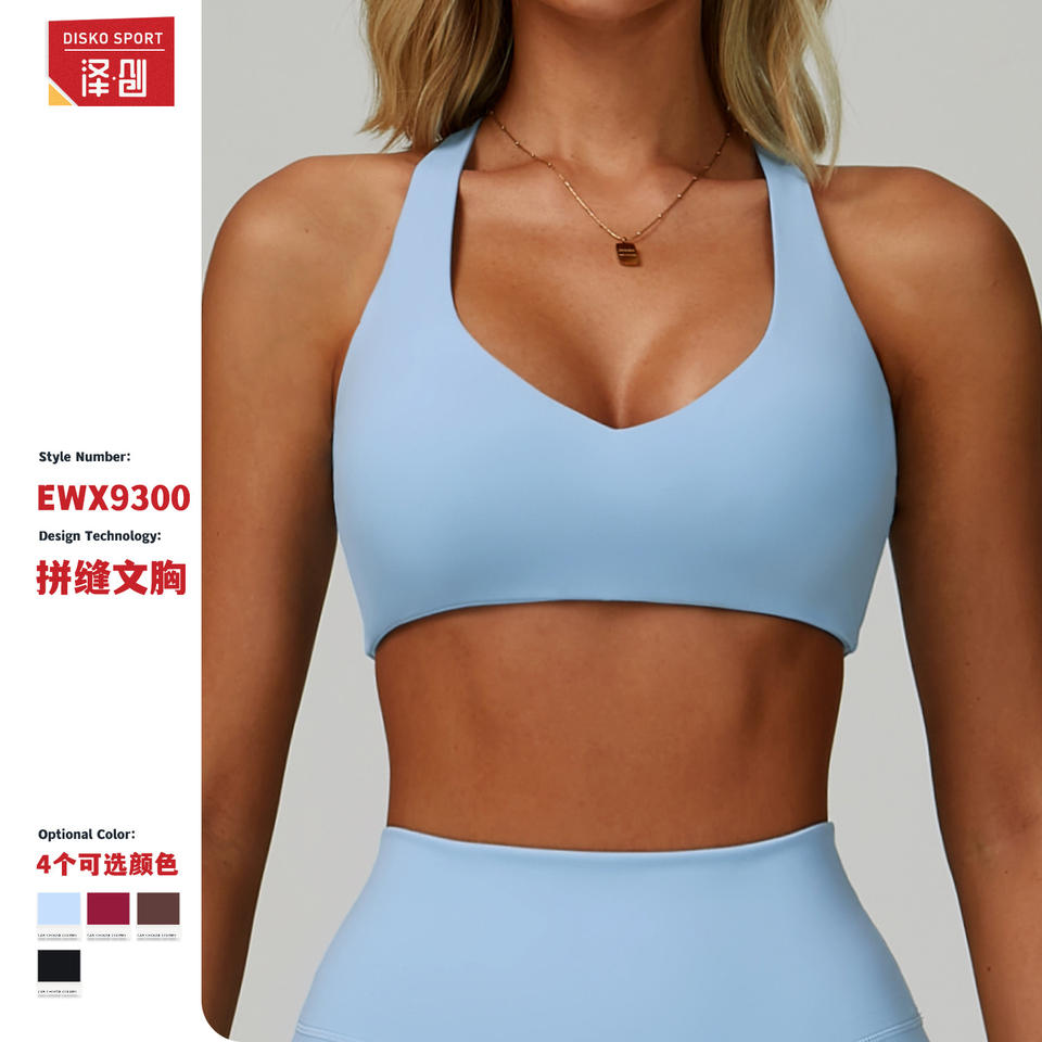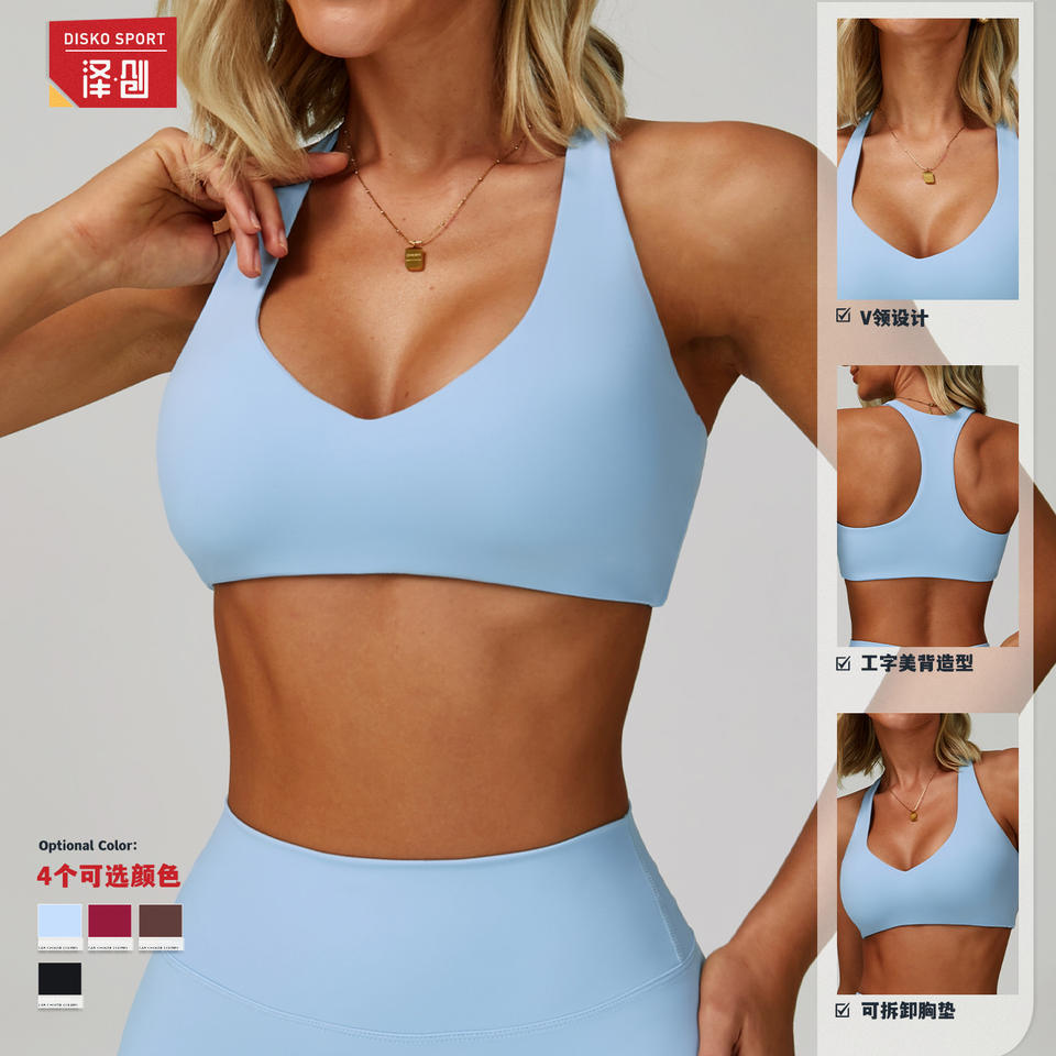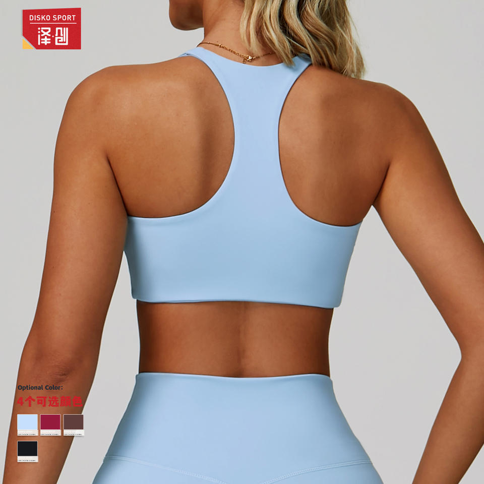 ดิสโก้ สปอร์ตสปอร์ตบราคอวีสำหรับผู้หญิง แห้งเร็ว เรเซอร์แบ็ค โยคะ วิ่ง ชุดออกกำลังกาย สีฟ้าอ่อน ขนาดกลาง