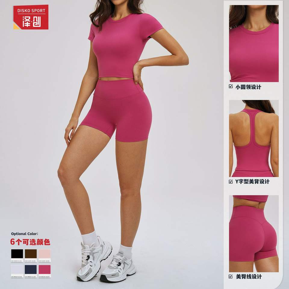 ดิสโก้ สปอร์ตชุดโยคะสตรีสีทึบกระชับพอดีชุดกีฬาสองชิ้นสำหรับออกกำลังกายวิ่งกลางแจ้ง TZ5087
