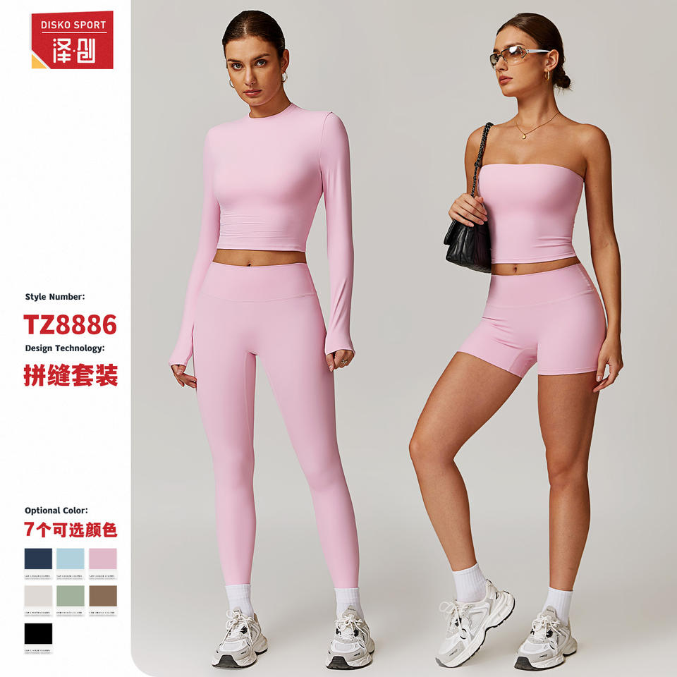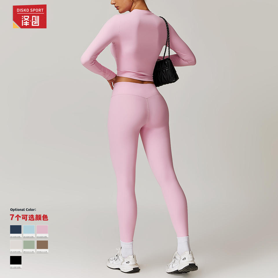 ดิสโก้ สปอร์ตชุดโยคะสตรีแขนยาวเอวสูงสีทึบชุดออกกำลังกายสำหรับออกกำลังกายในยิม 8886