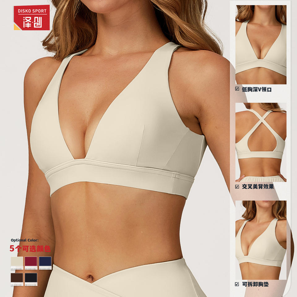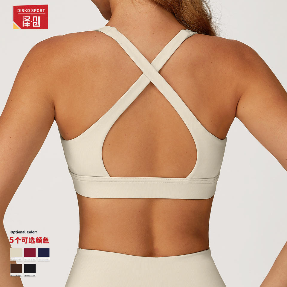 ดิสโก้ สปอร์ต โยคะ บรา ครอสแบ็ค สปอร์ตบราสำหรับผู้หญิง วิ่งออกกำลังกาย ชุดชั้นใน Smlxl สีข้าวโอ๊ต แอปริคอท